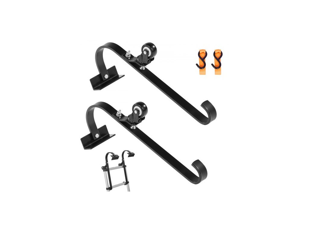 Střešní hák na žebřík, balení 2 kusů s pevným kolečkem a otočnou tyčí, stabilizátor žebříku z odolné oceli s kolečky, prodloužení hřebene střechy pro prevenci poškození, nosnost 600 liber, snadný přístup na strmé střechy