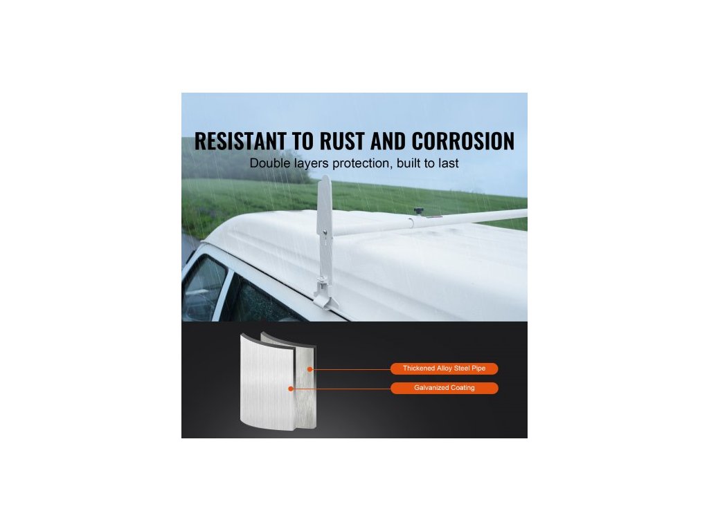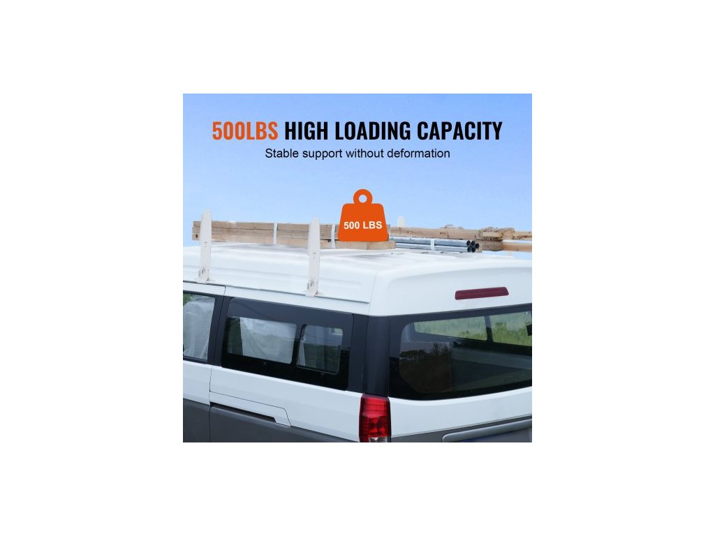 Střešní nosič žebříků pro dodávky, 2 tyčové nosiče žebříků z legované oceli, nastavitelné od 1200 do 2000 mm, nosnost 227 kg, kompatibilní s dodávkami velké velikosti s okapem, Chevrolet Express, GMC Savana