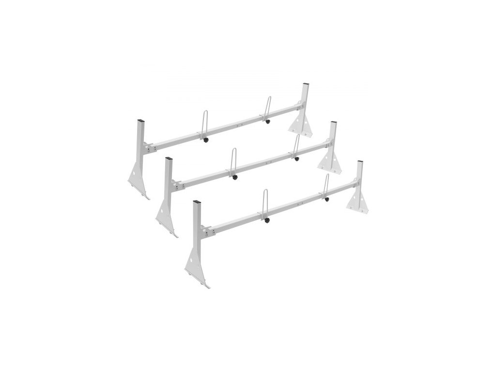 Střešní nosič žebříků pro dodávky, 3tyčové nosiče žebříků z legované oceli s dorazy, nosnost 340 kg, nastavitelné střešní nosiče pro dodávky plné velikosti s okapy, kompatibilní s vozy Chevrolet Express atd.