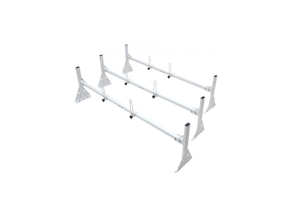 Střešní nosič žebříků pro dodávky, 3tyčové nosiče žebříků z legované oceli s dorazy, nosnost 340 kg, nastavitelné střešní nosiče pro dodávky plné velikosti s okapy, kompatibilní s Chevrolet Express atd.