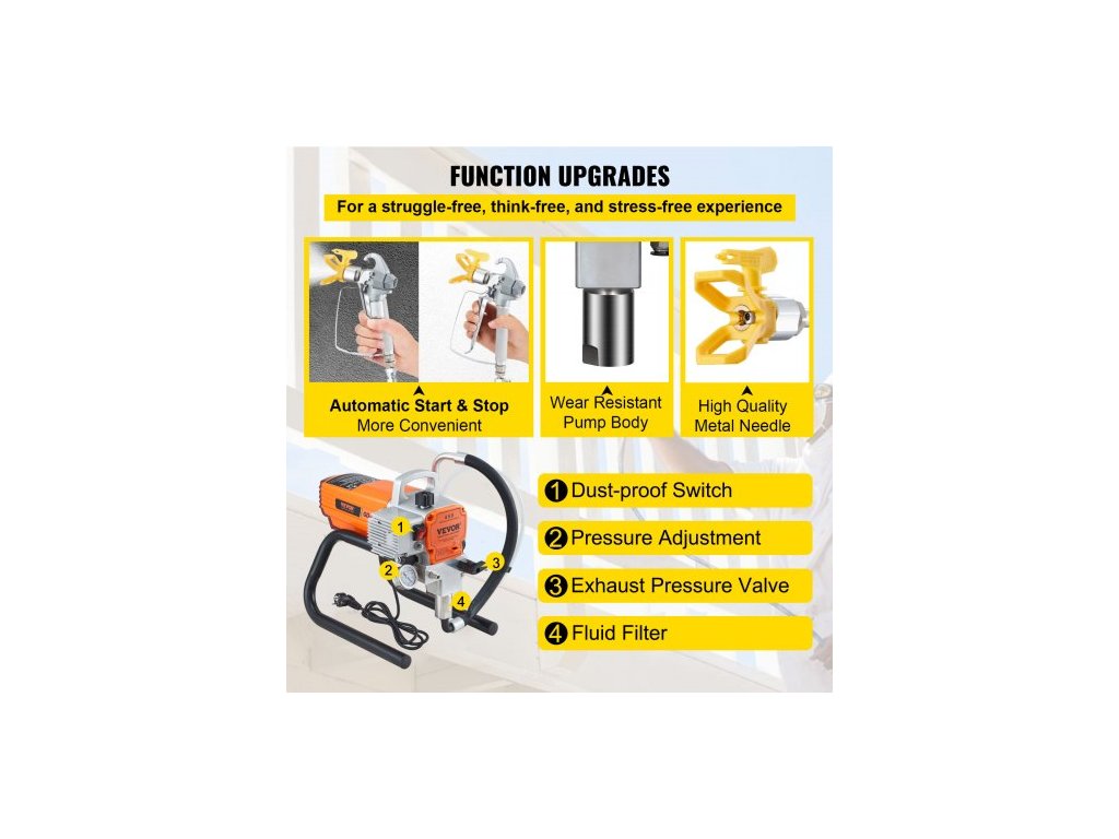 Stříkací pistole , bezvzduchová stříkací pistole 1500 W, hadicová stříkací pistole 3000 PSI, stříkací pistole pro domácnosti, lodě, mosty, věže, sloupy a další velké dlouhodobé průmyslové kovové konstrukce