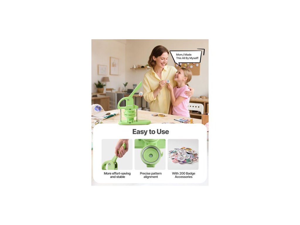 Stroj na výrobu knoflíků , 32 mm / 58 mm 2 v 1, plastový výrobník odznaků s 200 díly knoflíků, kruhový vykrajovátek a kouzelná kniha, zesílená ergonomická rukojeť, pro výrobu odznaků, personalizované odznaky, zelená