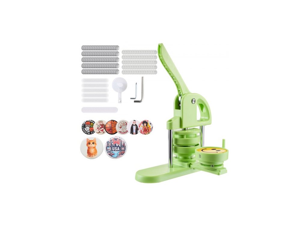 Stroj na výrobu knoflíků , 75 mm, plastový stroj na výrobu odznaků se 100 díly knoflíků, kruhový řezák a kouzelná kniha, zesílená ergonomická rukojeť, pro výrobu odznaků, personalizovaných odznaků a klíčenek, zelená