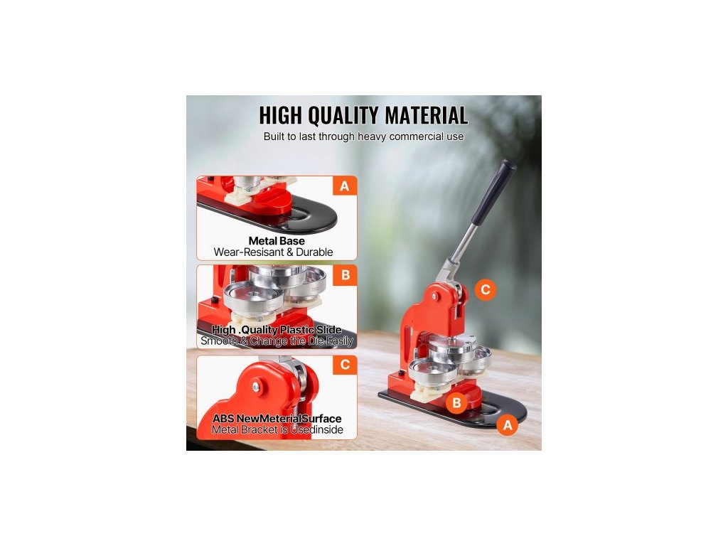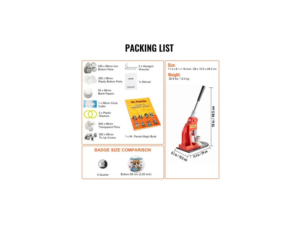 Ovládání: Ruční, Průměr raznice: 2,25 palce / 58 mm, Rozměry: 11,4 x 6,1 x 19 palců / 29 x 15,5 x 48,5 cm, Model: BJS-58-RD-01, Materiál: Železo a ABS, Hmotnost: 26,9 lbs / 12,2 kg