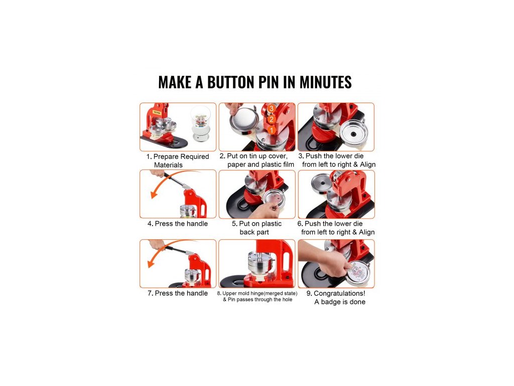 Stroj na výrobu knoflíků , sada na děrování odznaků 58 mm (2,25 palce), dětské dárky pro kutily, výroba odznaků, potřeby na výrobu knoflíků s 500 díly na knoflíky a kruhovým vykrajovátkem a kouzelnou knihou