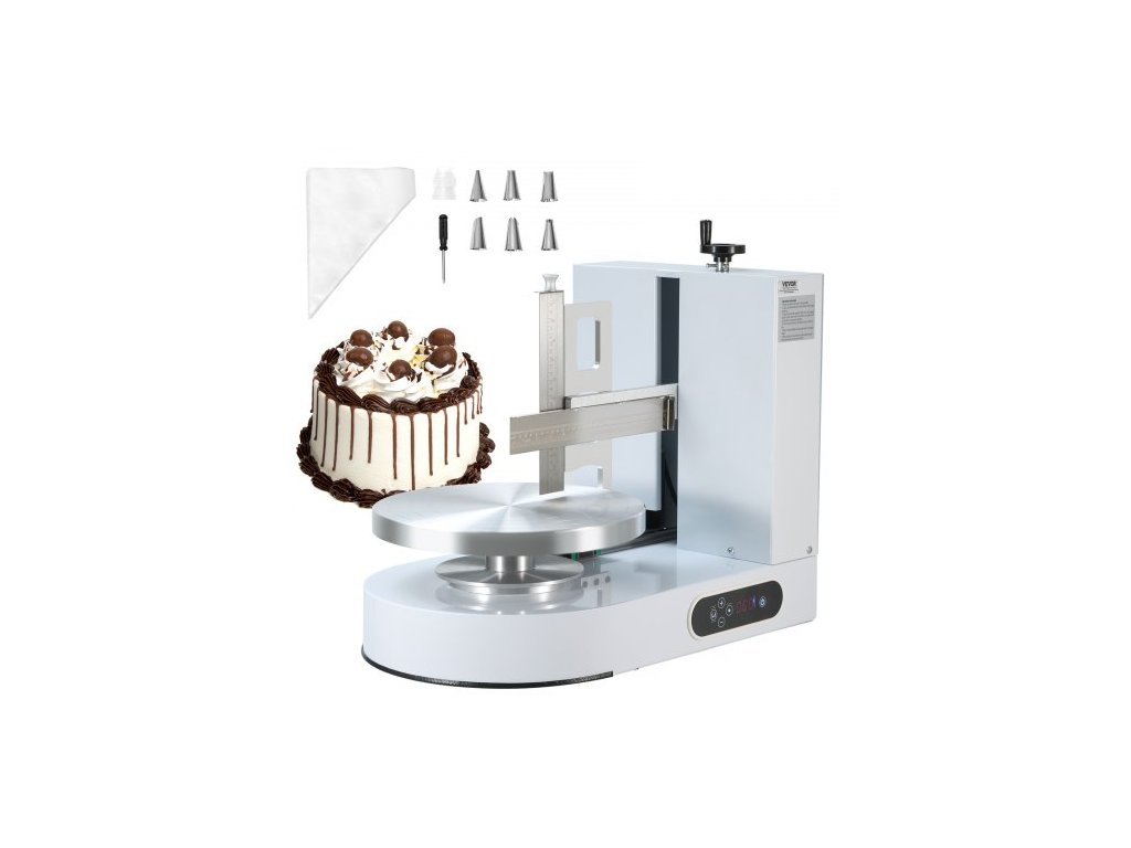 Stroj na zdobení dortů , stroj na roztírání a potahování dortového krému, tichý stroj na polevu dortů, otočný talíř s nastavitelnou škrabkou, pro dort o průměru 15 až 35 cm, rychlost otáčení 25–320 ot./min, bílý