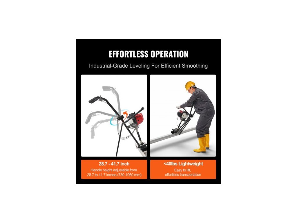 Strojní lišta na plynový beton , se sadou rovných lišt z hliníkové desky o délce 3370 mm, čtyřtaktní vibrační motor pro konečnou úpravu betonu s výškově nastavitelnými rukojeťmi, vysoce účinné betonářské nářadí 6500 ot./min