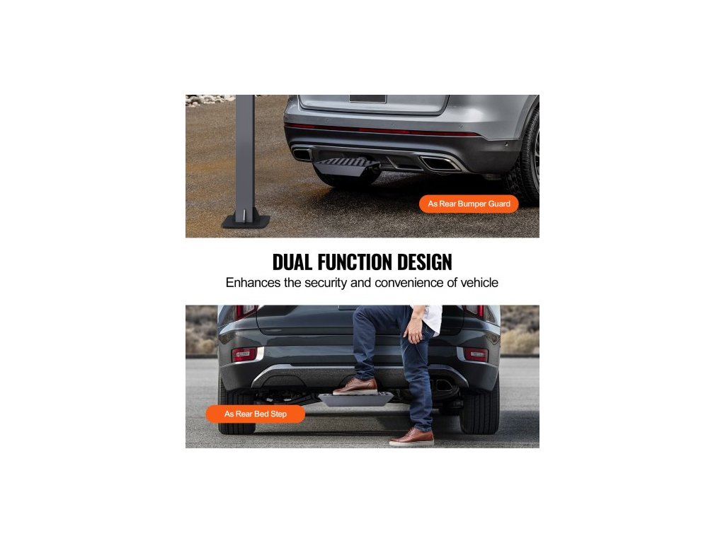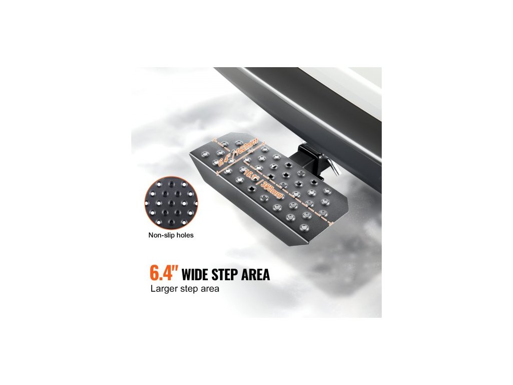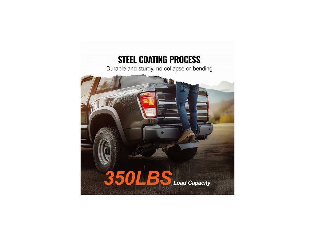 Stupeň pro tažné zařízení 2" pro přijímač, pevná ocelová konstrukce s nosností 350 liber, ochranný kryt zadního nárazníku s pojistným čepem, univerzální provedení pro nákladní automobily, SUV, pickupy a přívěsy