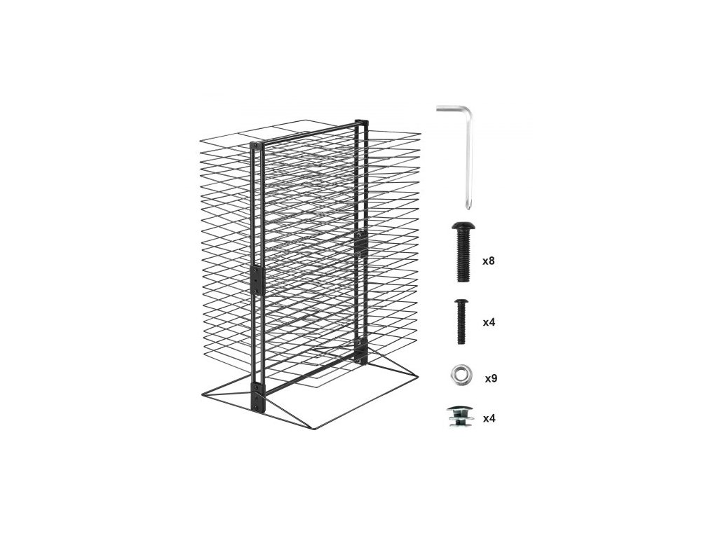 sušák na malířské předměty, 50 vyjímatelných polic, 20 x 17 x 30 palců, sušák na malířské předměty se stabilní základnou, sušák na malířské předměty z uhlíkové oceli pro umělecká díla ve třídách, uměleckých ateliérech a školách, černý