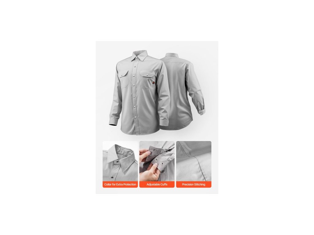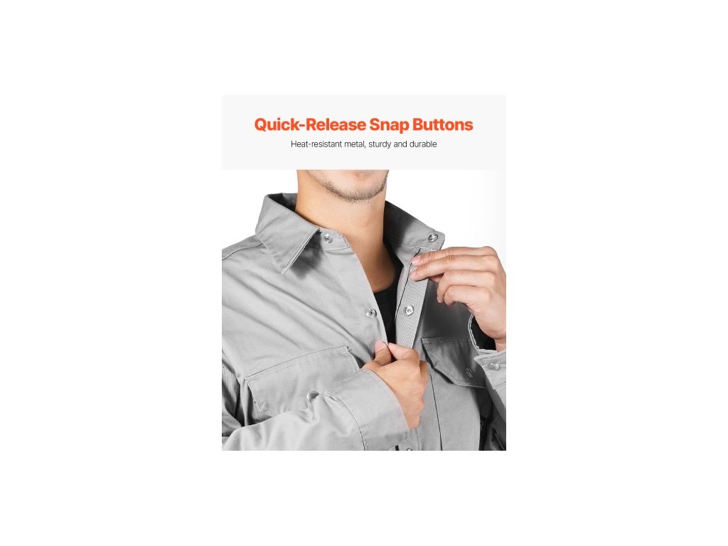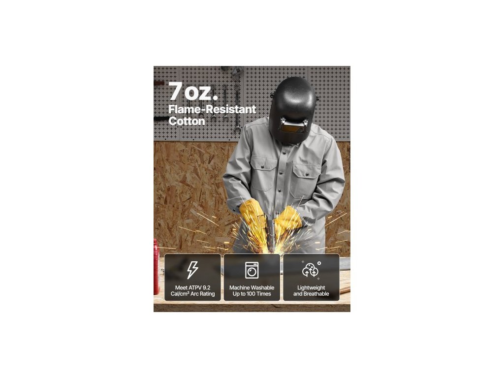 Svářečská bunda FR – velikost XXL, 7 oz. Svářečská bunda z nehořlavé bavlny, pratelná v pračce, tepelně odolná bezpečnostní bunda s kovovým patentním knoflíkem a nastavitelnou manžetou, splňuje normu ATPV 9,2 Cal/cm2 pro hodnocení oblouku