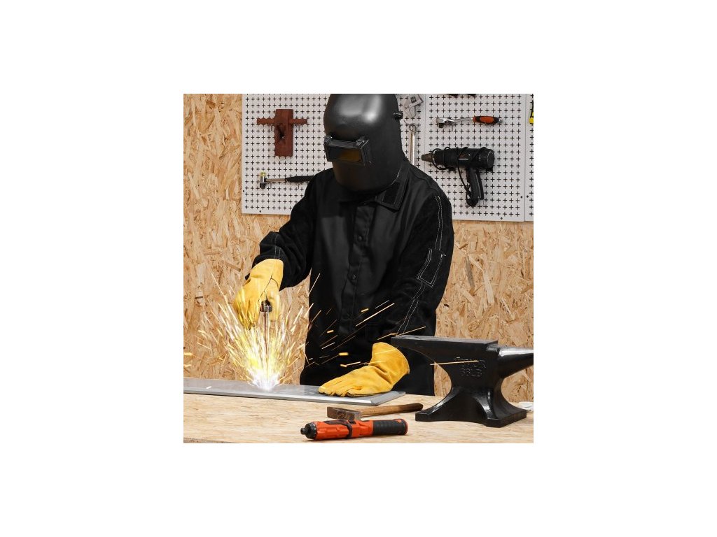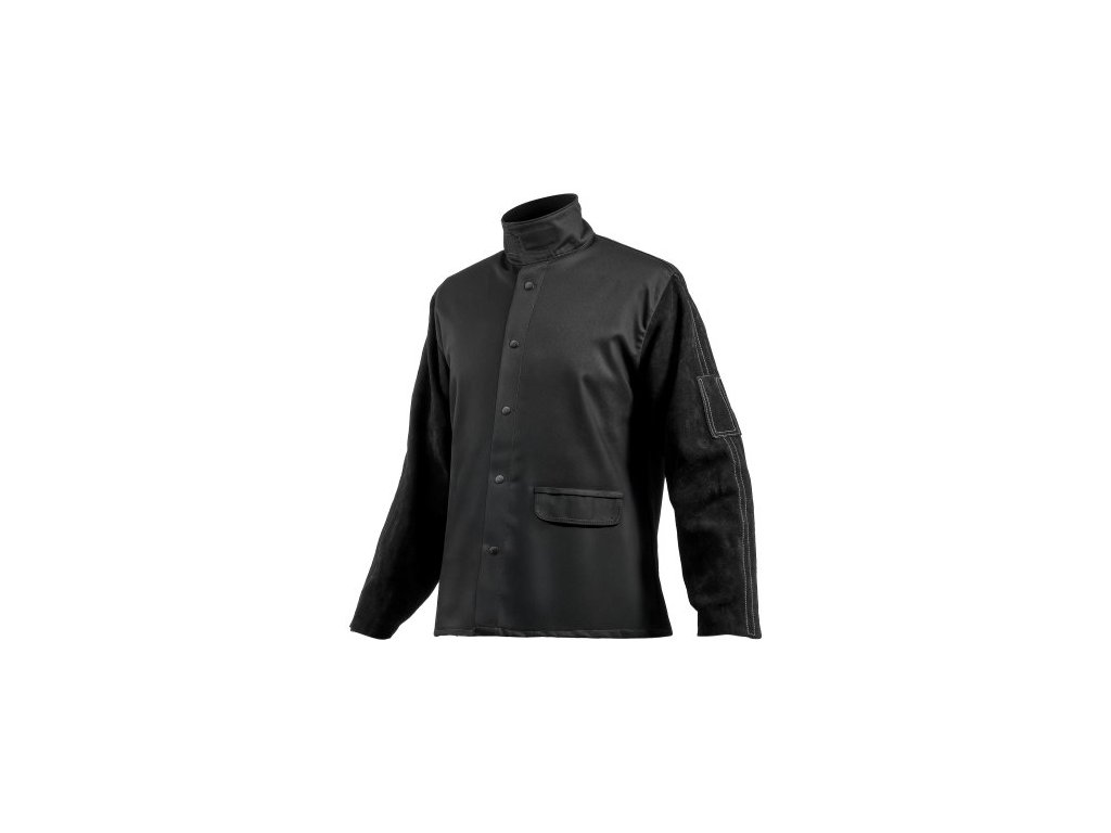 Svářečská bunda nehořlavá - velikost L, odolný rukáv z hovězí štípané kůže + 273 ml. Ochranná svářečská bunda z FR bavlny, žáruvzdorná, s patentními knoflíky a kapsami, ideální pro svářečské montéry