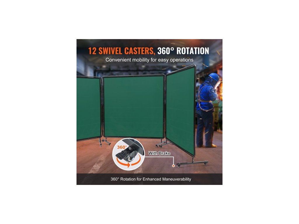 Svářečská zástěna s rámem, 3dílná svářečská zástěna 182,9 cm x 182,9 cm, 3dílná svářečská zástěna, ochranná svářečská zástěna z nehořlavého vinylu na 12 otočných kolečkách (6 uzamykatelných), přenosná a profesionální pro dílnu, ekologická