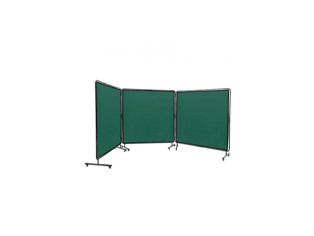 Svářečská zástěna s rámem, 182,9 cm x 182,9 cm, 3dílná svářečská zástěna, nehořlavá vinylová ochranná svářečská zástěna na 12 otočných kolečkách (6 uzamykatelných), přenosná a profesionální pro dílnu, zelená