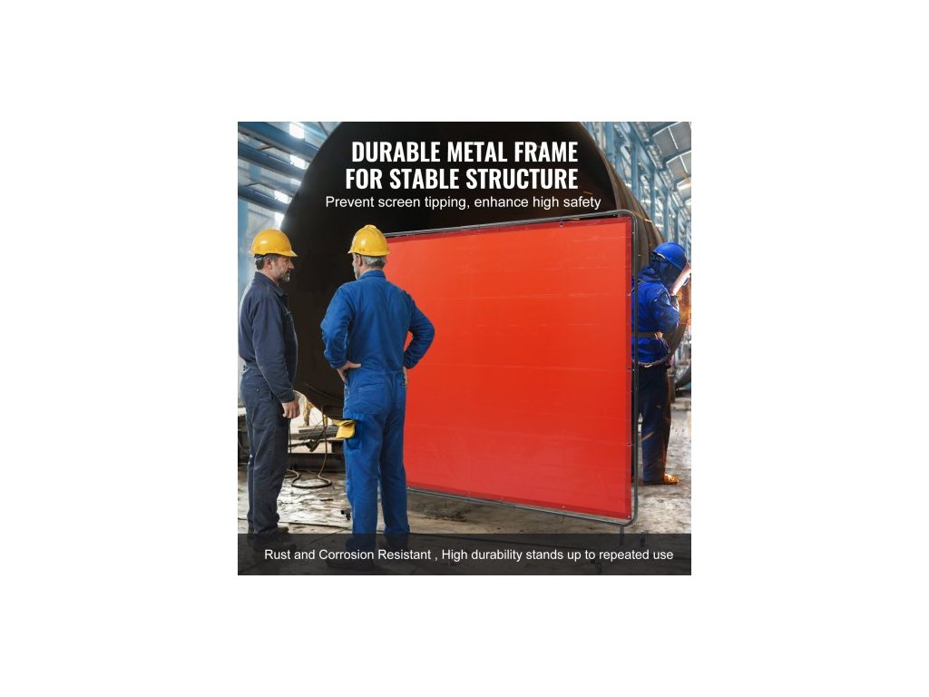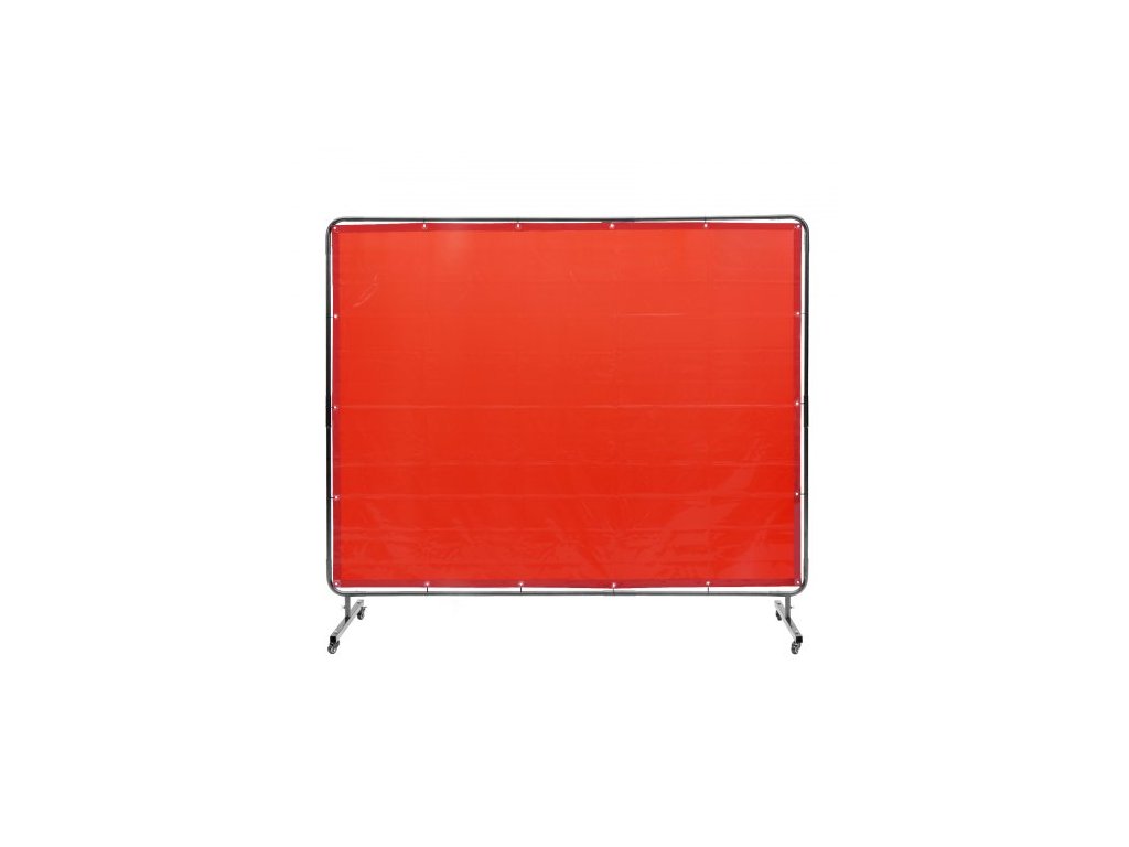 Svářečská zástěna s rámem, svářečská zástěna 1,83 x 2,44 m, ochranná svářečská zástěna z nehořlavého vinylu na 4 otočných kolečkách (2 uzamykatelná), přenosná a profesionální pro dílnu/průmysl, červená