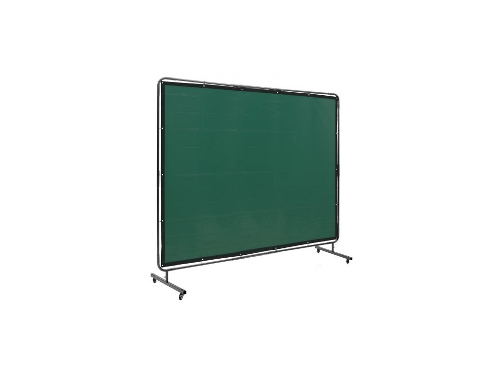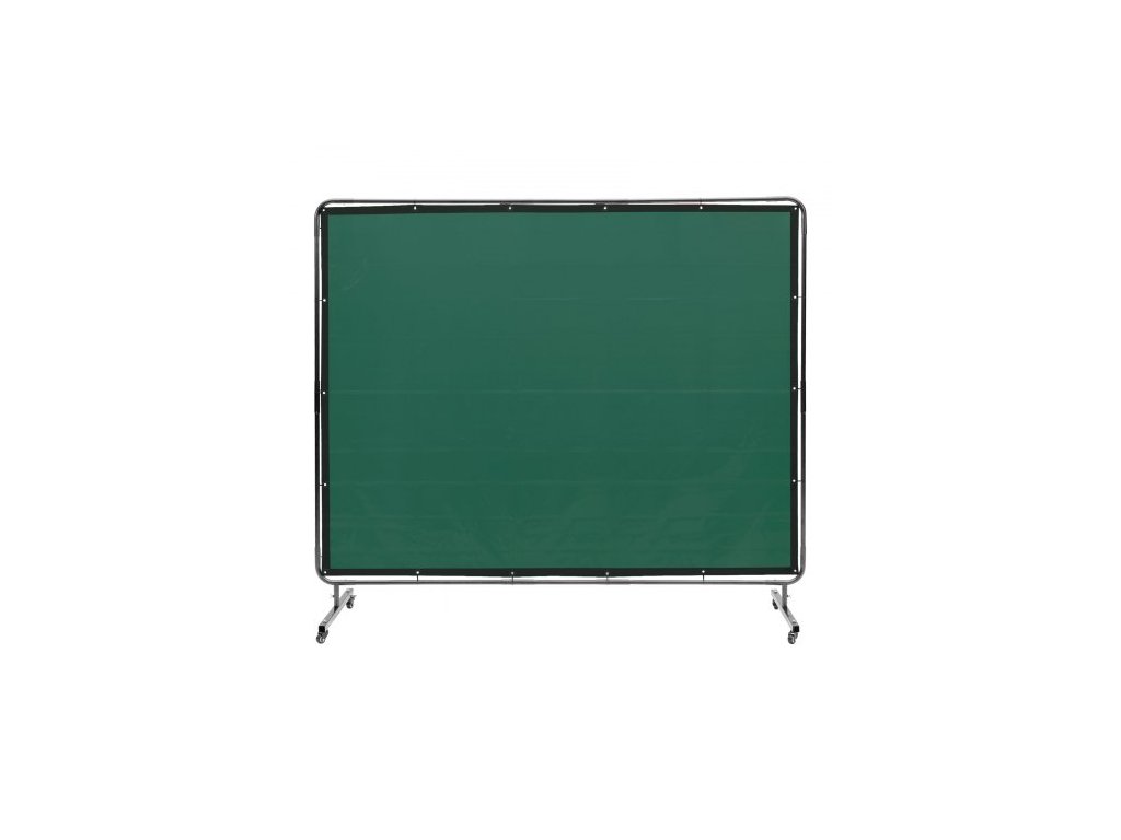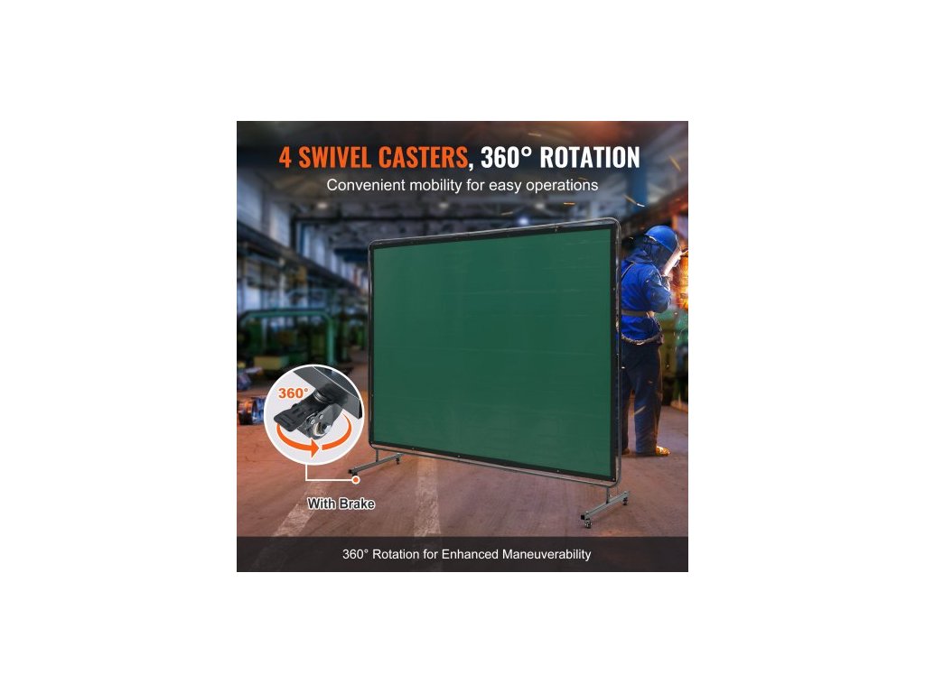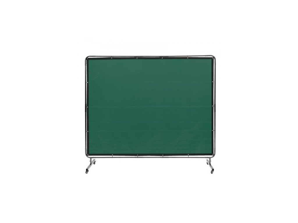 Svářečská zástěna s rámem, svářečská zástěna 1,83 x 2,44 m, ochranná svářečská zástěna z nehořlavého vinylu na 4 otočných kolečkách (2 uzamykatelná), přenosná a profesionální pro dílnu/průmysl, zelená