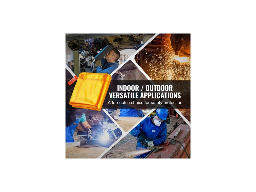 Svářečská zástěna s rámem, svářečská zástěna 6' x 6', ochranná svářečská zástěna z nehořlavého vinylu na 4 otočných kolečkách (2 uzamykatelná), přenosná a profesionální pro dílnu/průmysl, žlutá