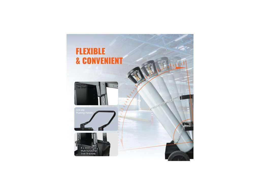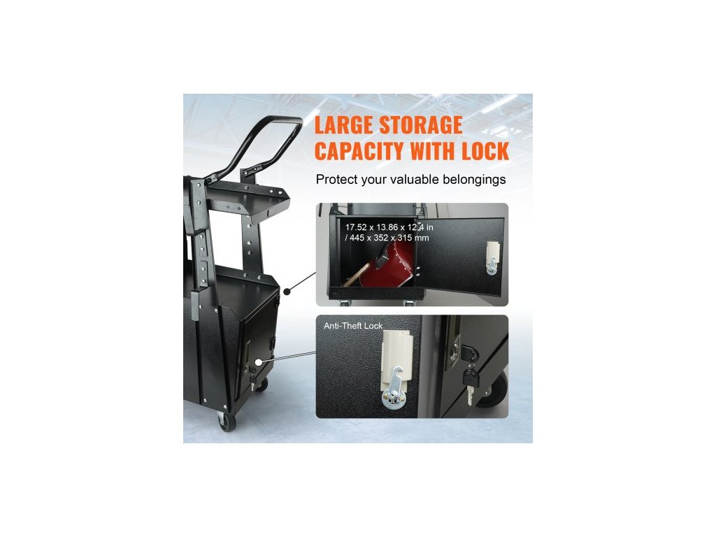 Svářečský vozík , dvoupatrový robustní svářečský vozík s uzamykatelnou skříňkou s ochranou proti krádeži, nosnost 120,2 kg, otočná kola o 360°, bezpečnostní řetězy pro uložení nádrže, svářečská skříň pro TIG, ARC, plazmovou řezačku