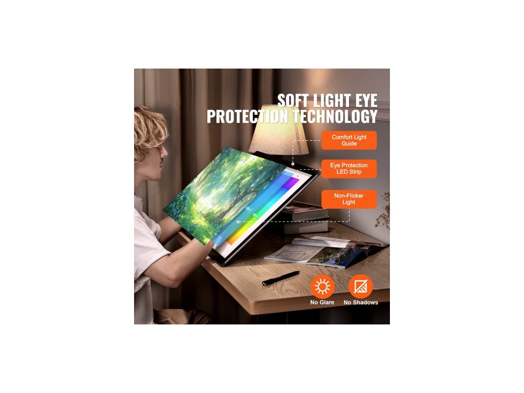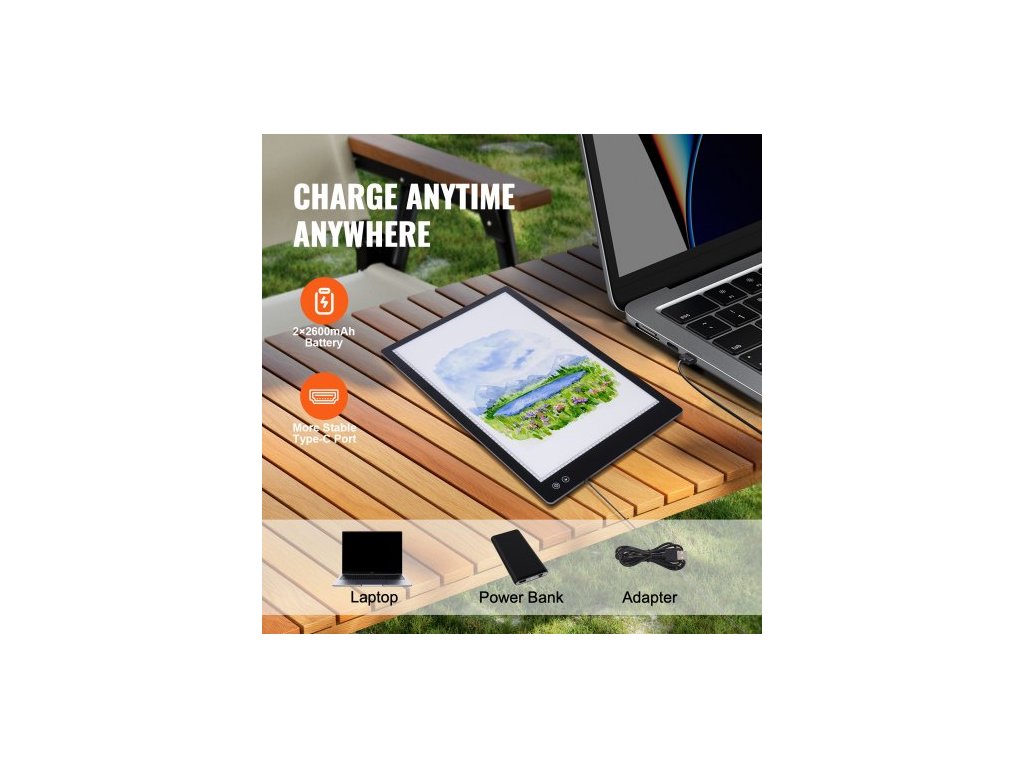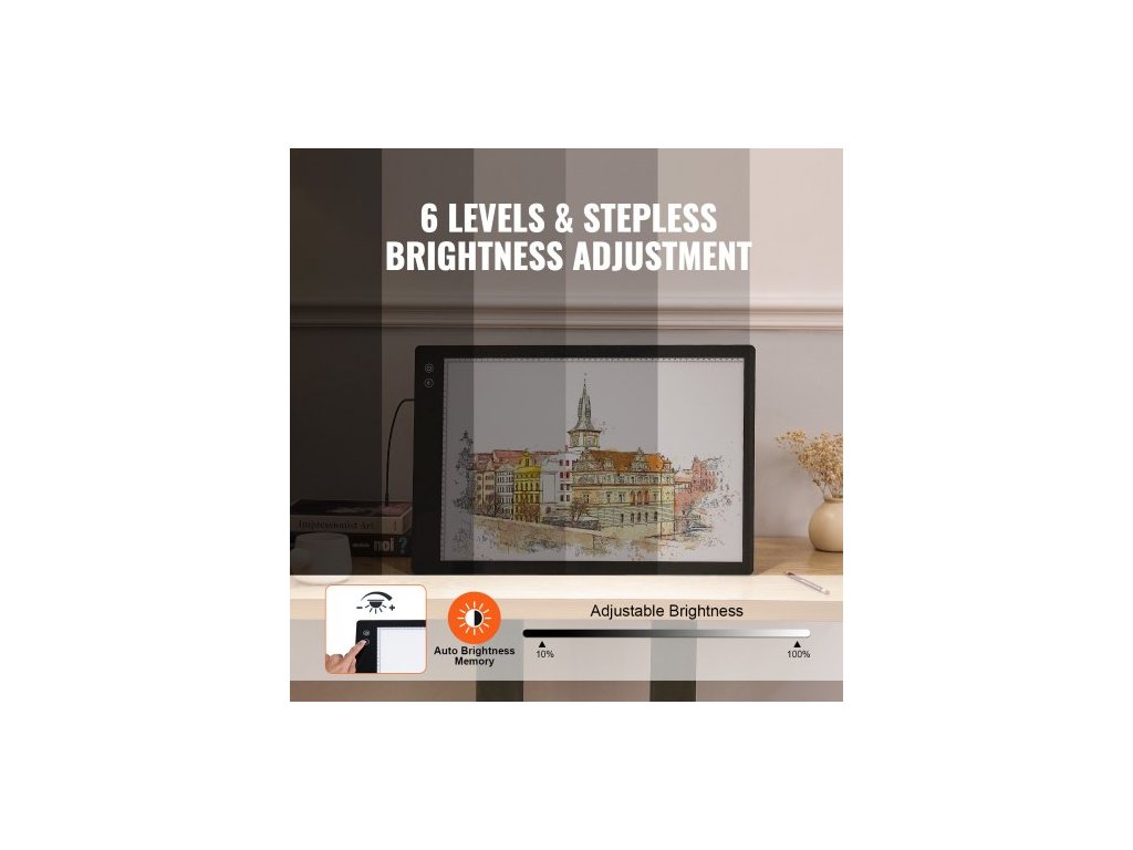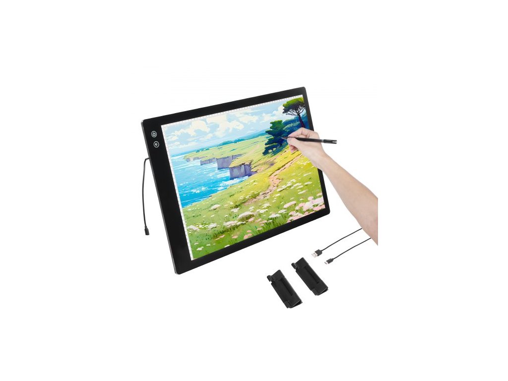 Světelná tabule , LED světelná podložka A2 se stmívatelným jasem v 6 úrovních, dobíjecí světelný stůl pro obkreslování, světelný box pro diamantové malování, animaci, skicování, kreslení, šablonování, umělce (černý)