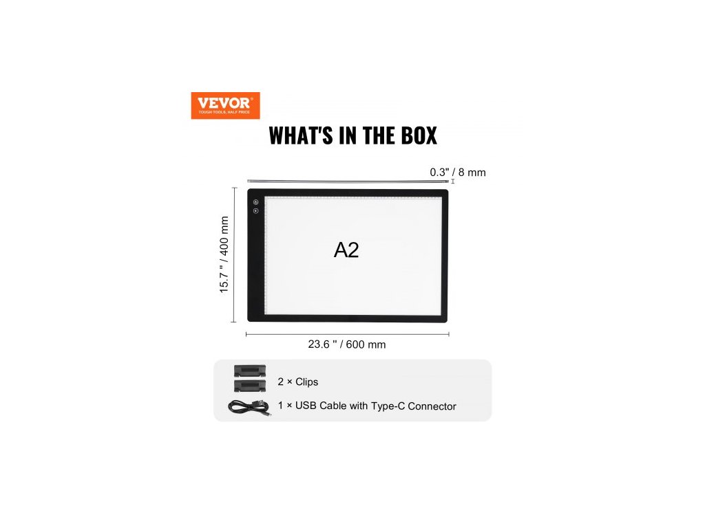 Světelná tabule , LED světelná podložka A2 se stmívatelným jasem v 6 úrovních, dobíjecí světelný stůl pro obkreslování, světelný box pro diamantové malování, animaci, skicování, kreslení, šablonování, umělce (černá)