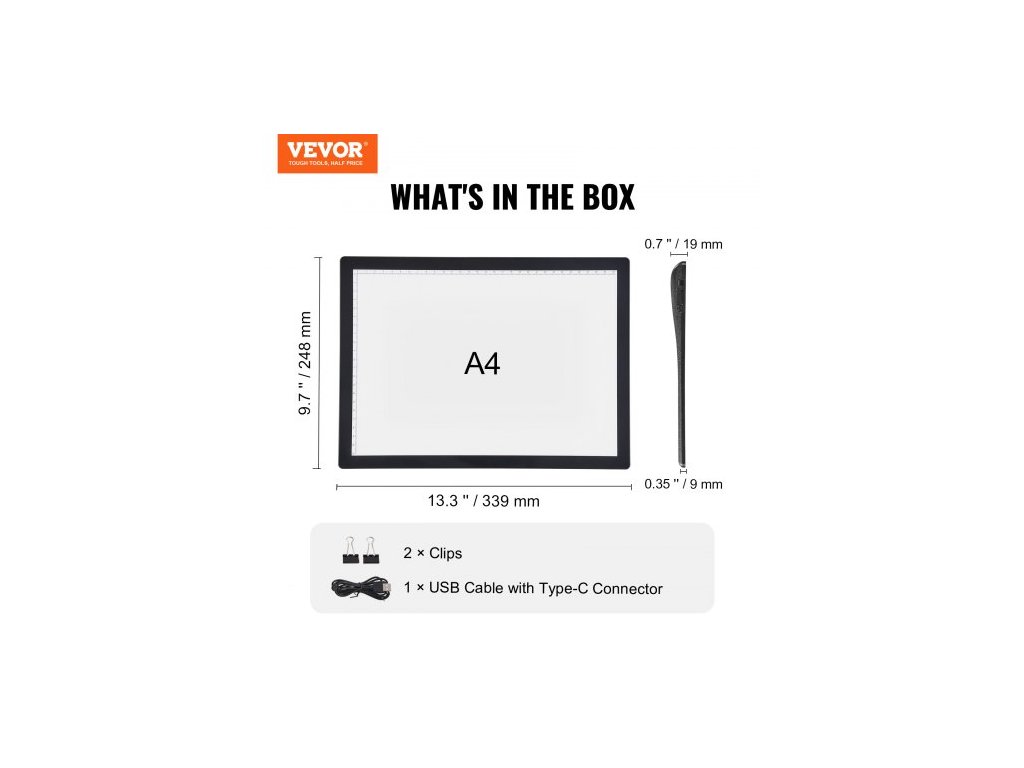 Světelná tabule , LED světelná podložka A4 s 5 úrovněmi stmívatelného jasu, dobíjecí světelný stůl pro obkreslování, světelný box pro diamantové malování, animaci, skicování, kreslení, šablonování, pro umělce (černá)