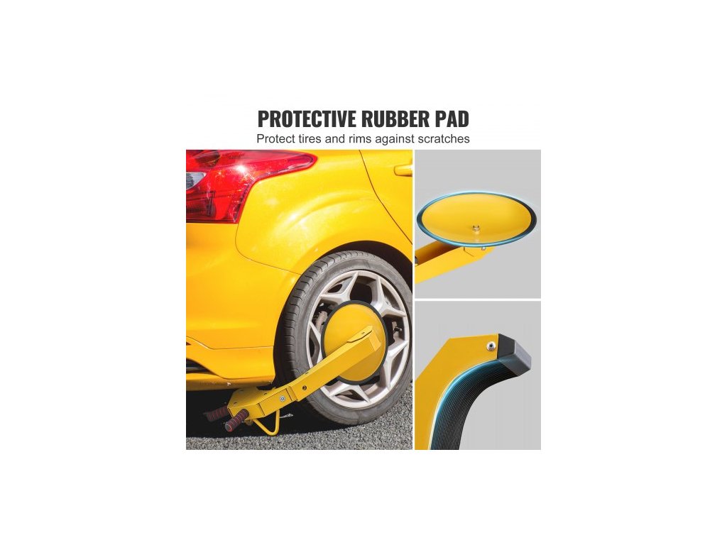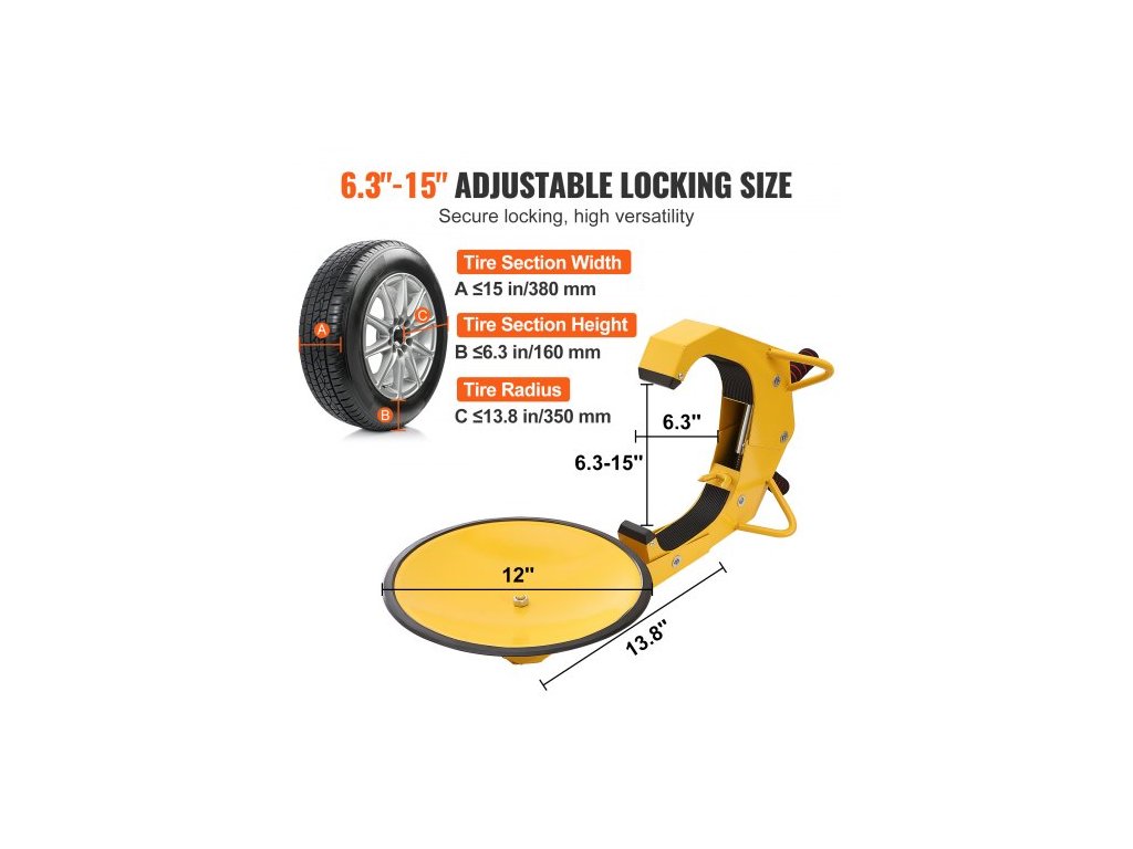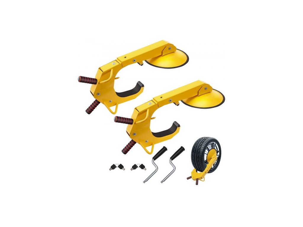 Typ: Zámek kola,Číslo modelu položky: QS-001-B,Množství: 2 ks,Materiál: Ocel Q235,Průměr přísavky: 12"/30 cm,Čistá hmotnost: 22 lbs/10 kg,Vhodné pro průměr kola: 6,3"-15"/160-380 mm