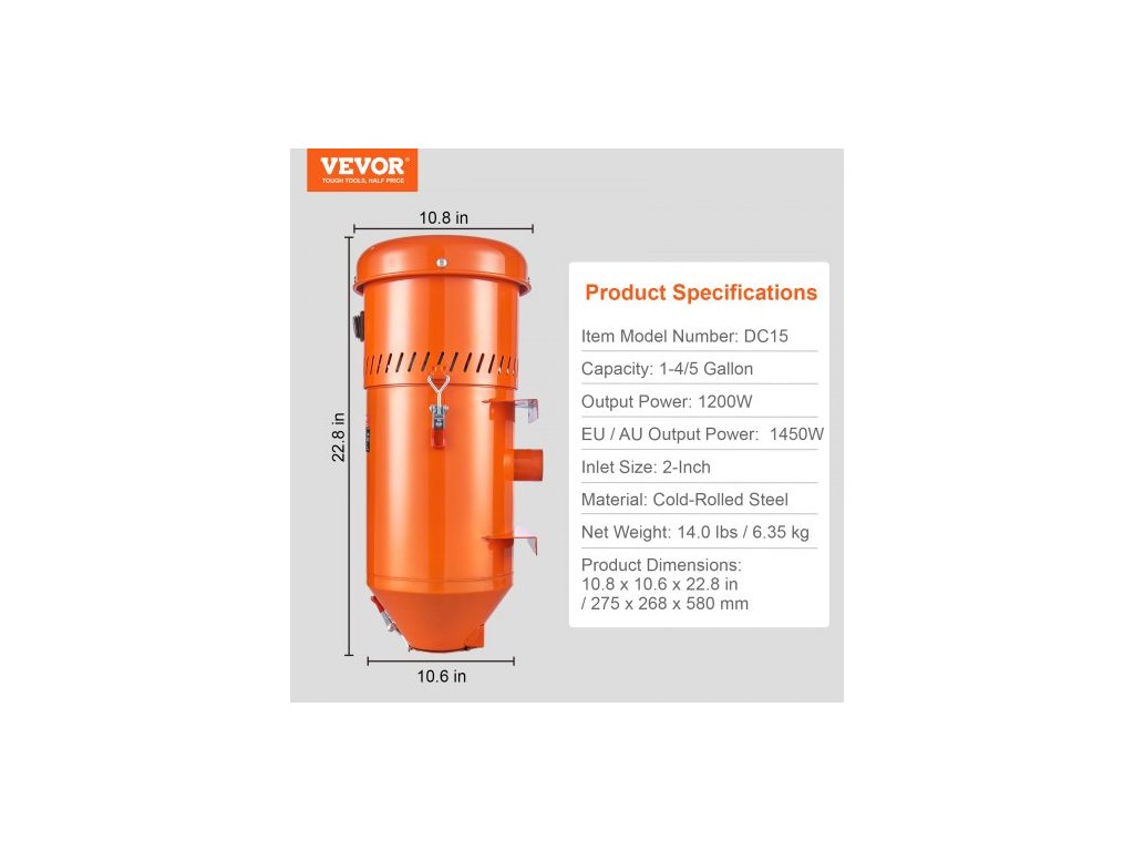 Objem: 1-4/5 galonu,Číslo modelu položky: DC15,Materiál: Ocel válcovaná za studena,Rozměry produktu: 10,8 x 10,6 x 22,8 palce / 275 x 268 x 580 mm,Čistá hmotnost: 14,0 lbs / 6,35 kg,Vstup: 2palcový