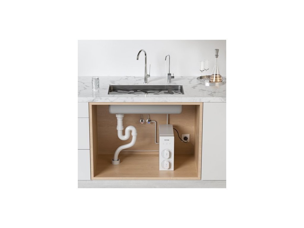 Provozní tlak: 0,1–0,4 MPa, Průtok: 800 GPD, Provozní teplota: 5–38 °C, Kompatibilní zdroj vody: Městský vodovodní kohoutek, Číslo modelu položky: SS-006, Rozměry položky: 397 x 137 x 347 mm, Čistá hmotnost položky: 8,3 kg 7,9 kg, Typ čištění: RO + PCF ultrafiltrace, Životnost: Průtok >= 2,1 l/min po 4000 l