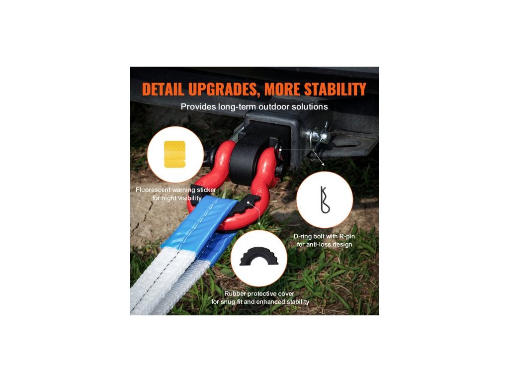 Tažné zařízení Shackle, pasuje na 2" tažná zařízení, pevnost v tahu 44100 lbs, D-kroužek s pojistným čepem pro tažné zařízení, příslušenství pro těžká tažná zařízení pro nákladní automobily, džípy, odtah terénních vozidel