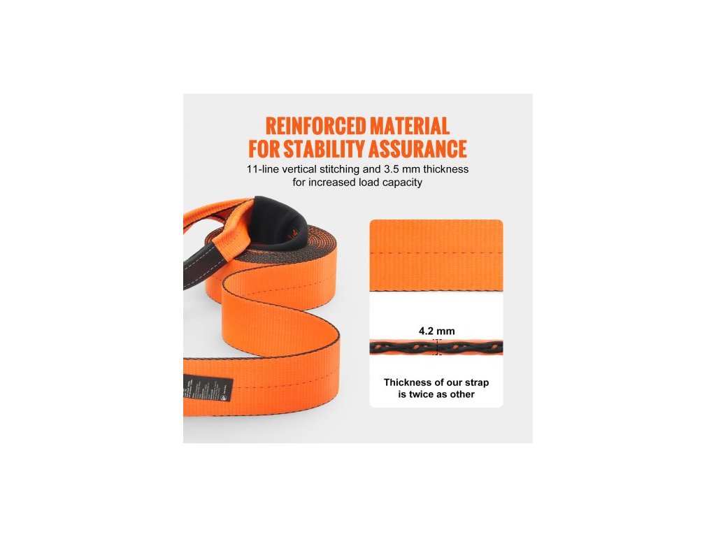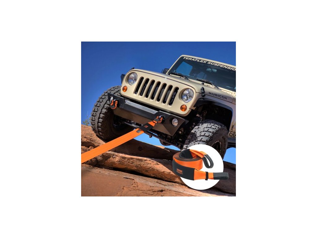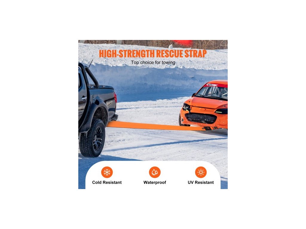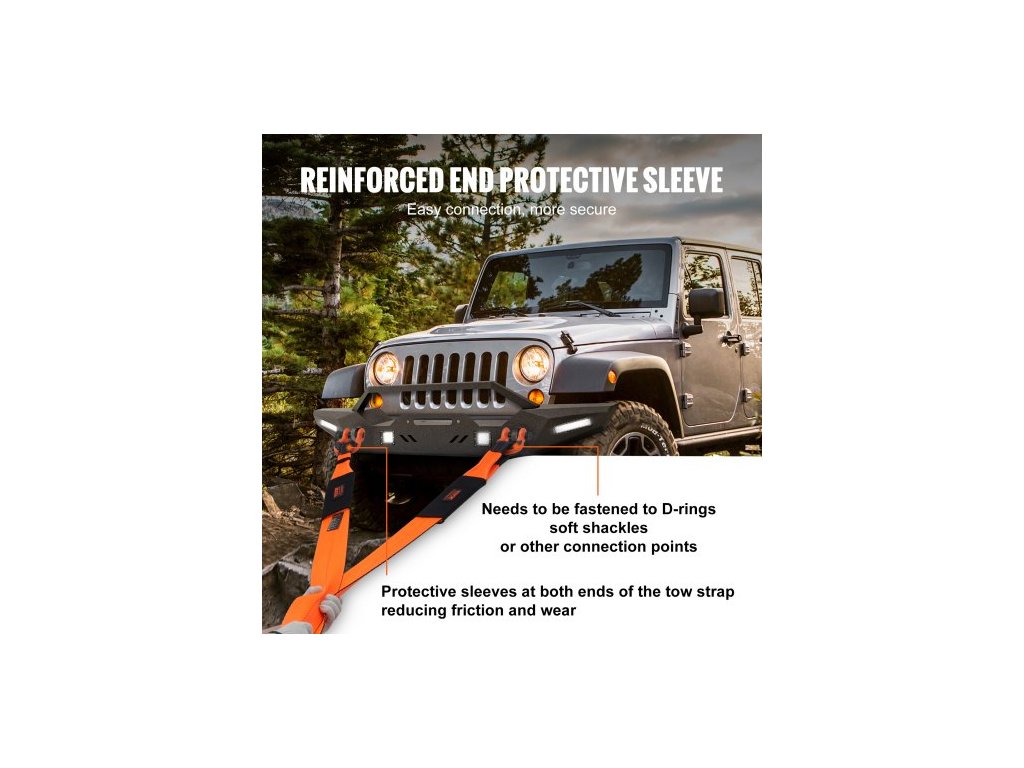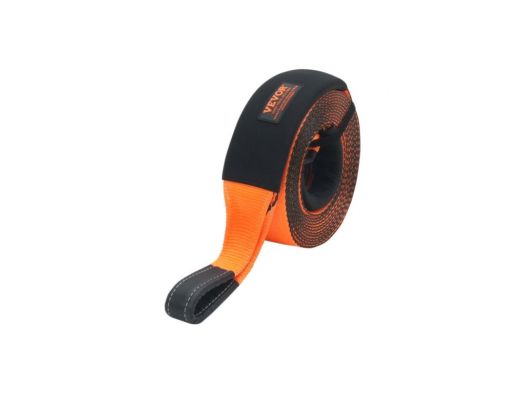 Tažný popruh 4" x 30'/10,2 cm x 9,1 m, pevnost v tahu 46 500 lbs/21 099 kg, trojitě zesílené smyčky, ochrana proti přetržení, odtah a odtah v terénu, odolnost vůči extrémnímu počasí, ochranné návleky a úložný vak