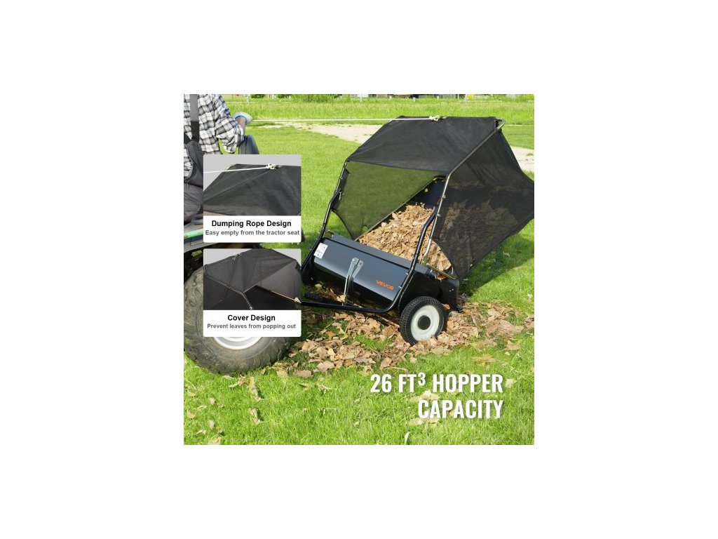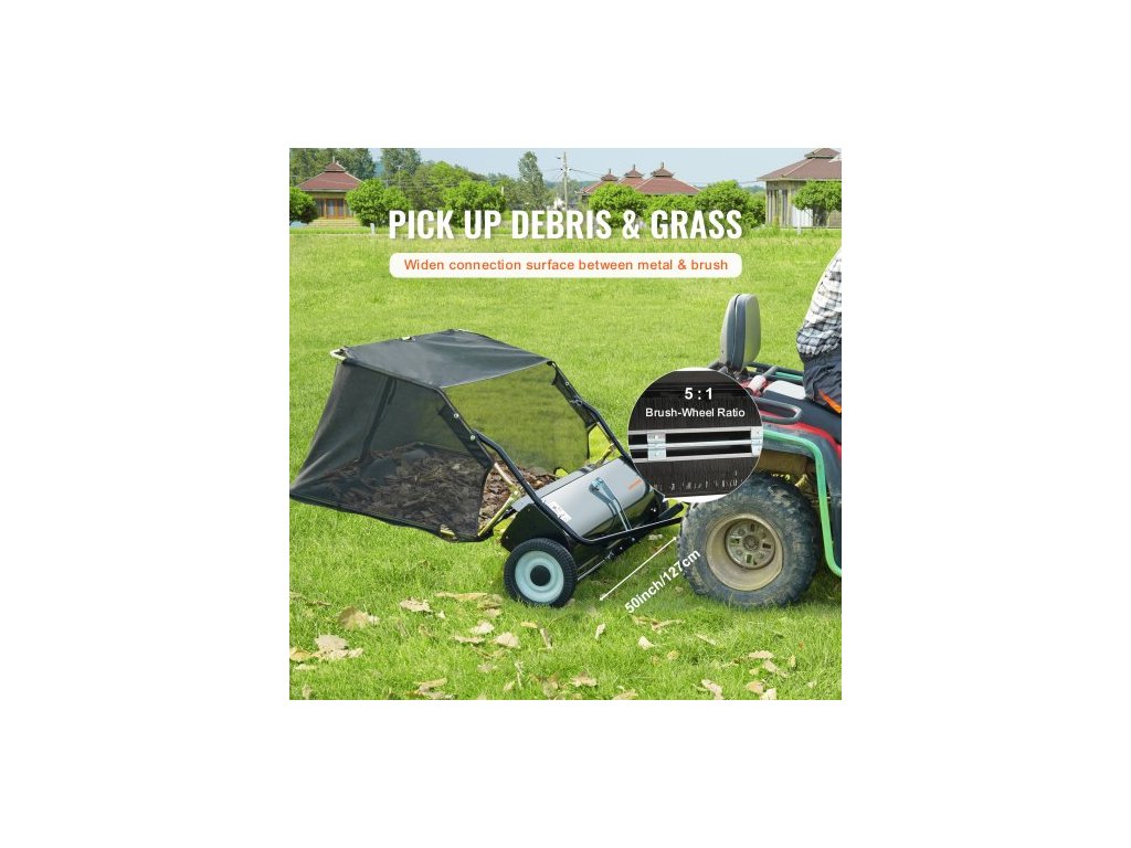 Tažný zametač trávníku, 127 cm Tažný zametač trávníku, 26 cu. Velkokapacitní sběrač listí a trávy, robustní zahradní zametací stroj s nastavitelnou výškou zametání pro zahradu, trávník a farmu