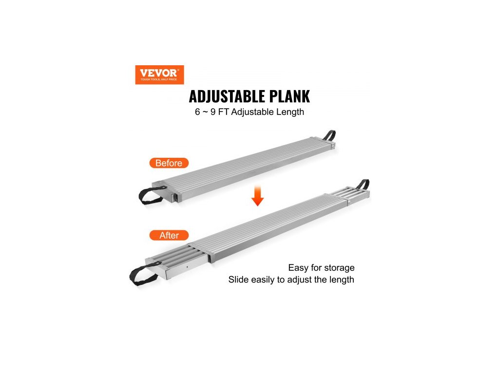 Teleskopická hliníková pracovní deska , 1,8–2,7 m, nosnost 226,8 kg, lešenářské desky