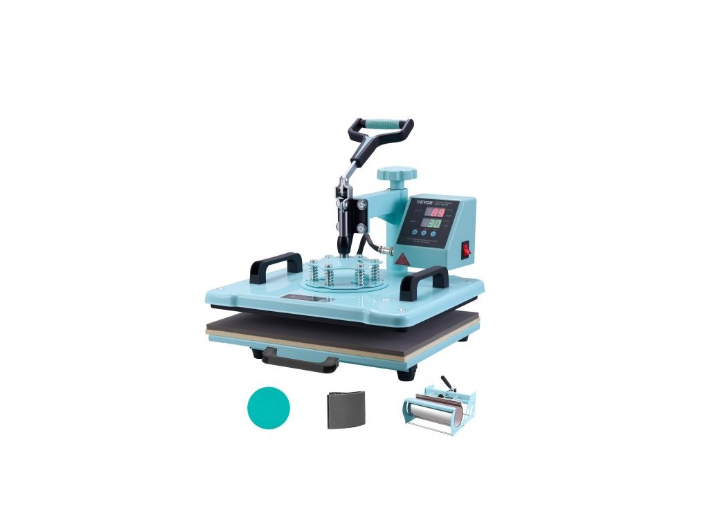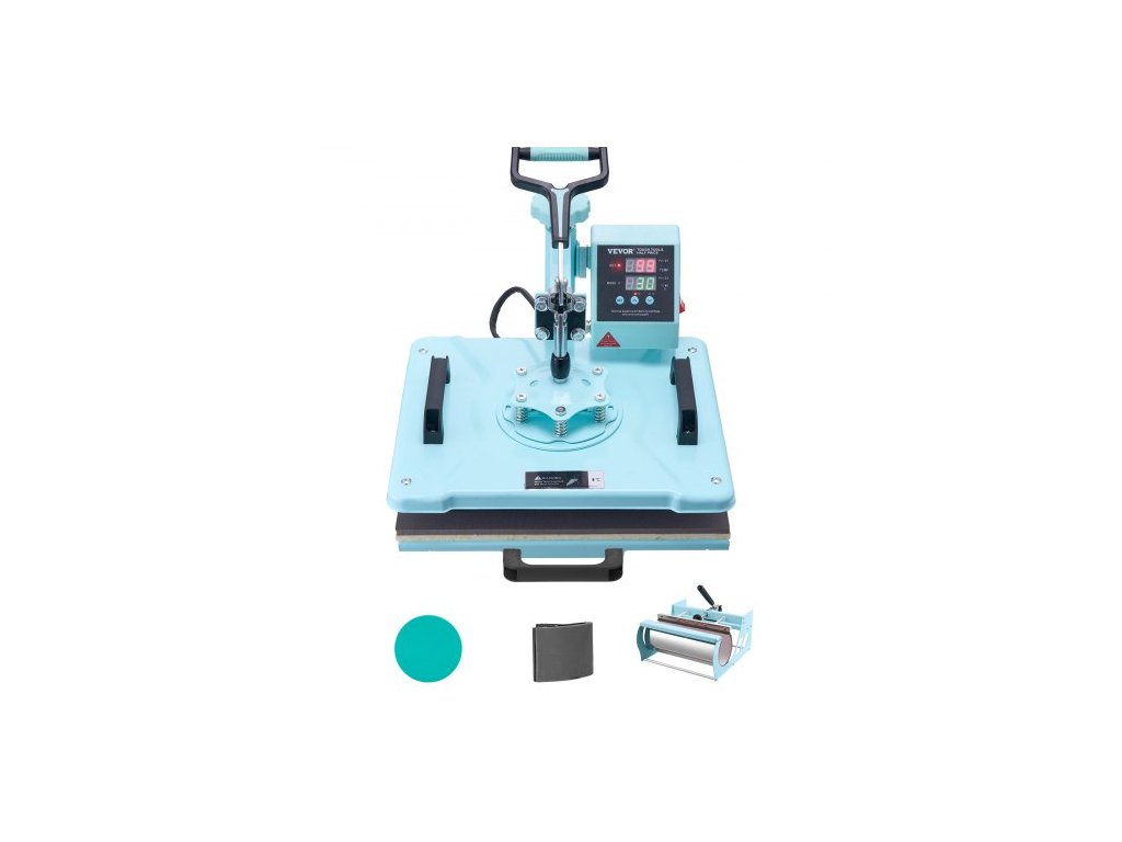 Teplolis , 12 x 15 palců, 5v1 teplosměnný stroj s 30 oz lisem, 360° otočné žehlení triček, digitální přesné ovládání, na trička/hrnky/čepice/talíře, zelený