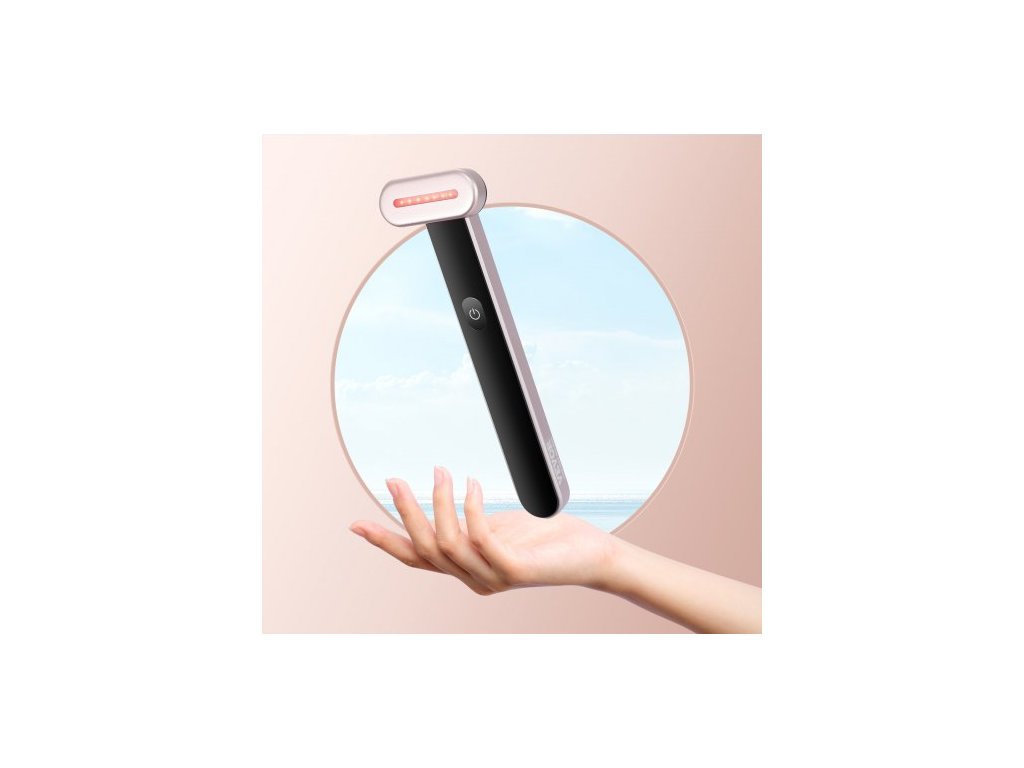 Hůlka na terapii červeným světlem na obličej, 7barevná LED hůlka na obličej, zařízení na terapii červeným světlem s tepelnou terapií | Mikroproudová vibrační masáž, přenosná LED kosmetická hůlka na obličej a krk