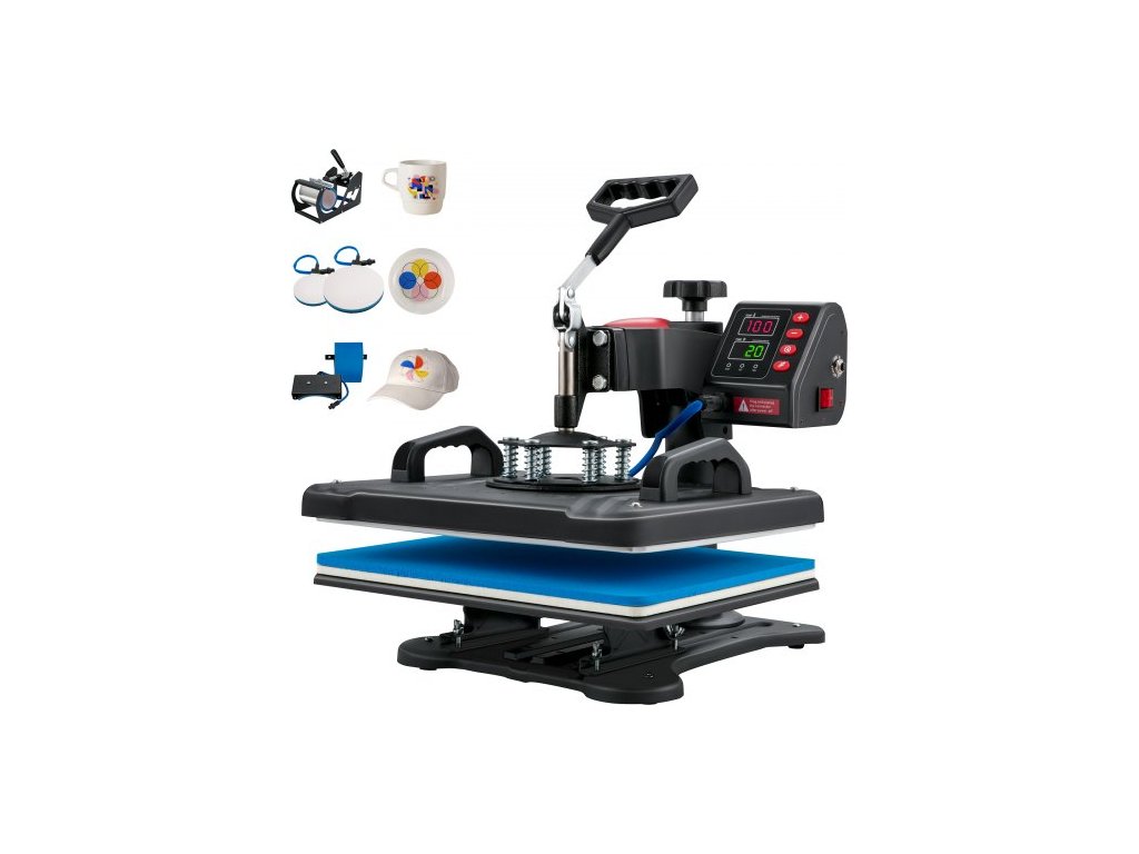 Teplolis , 5v1 termolis, 30,48 x 38,1 cm, sublimační tiskárna s rychlým ohřevem, digitální přesná regulace teploty, vinylový termolis na trička, talíře, hrnky, kelímky, 1250 W, přehledný displej, výklopný o 360°, 2 tepelně izolační podložky, teflonová deska, dvojitý ochranný kryt proti tlaku, stabilní provoz, průměr lisu na kelímky: 8 cm, časový rozsah: 0 - 999 s, lisovací deska: 29 x 38 cm, teplotní rozsah: 93 - 232 °C, rozměry produktu: 49 x 39 x 40 cm, rozměry lisu na klobouky: 5 x 3 x 1 palec / 13 x 8 x 2,4 cm, Průměr lisu na talíře č. 2: 6 palců / 15 cm, Průměr lisu na talíře č. 1: 5 palců / 12 cm, Napětí: 220 - 240 V, Model: TLM13135, Výška lisu na kelímky: 4,5 palce / 12 cm, Čistá hmotnost: 39,7 liber / 18 kg, Příkon: 1250 W