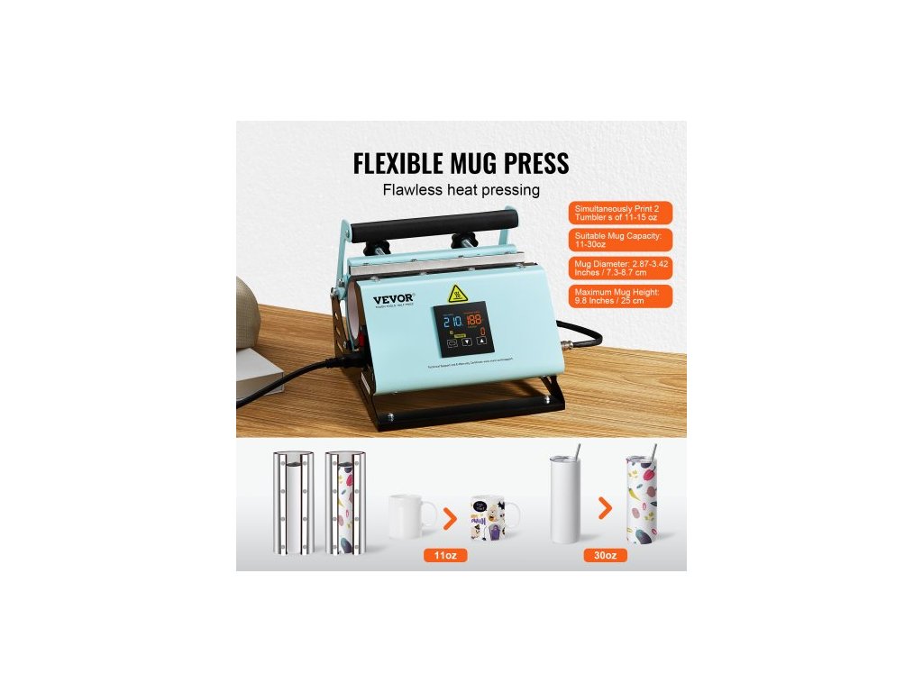 Velikosti sublimačních hrnků: 11 oz, 15 oz, 16 oz, 20 oz, 30 oz, Lis na klobouky: 180 x 95 x 240 mm / 7,09 x 3,74 x 9,45 palce, Časový rozsah:,Barva: Zelená,Velikost topné desky lisu na klobouky: 5,9" x 3,15" / 155 x 80 mm,Velikost topné desky lisu na hrnky: 9,8" x 8,1" / 250 x 205 mm, Maximální výška hrnku: 250 mm / 9,84 palce, Průměr hrnku: ?75 mm - ?85 mm, Velikost produktu:, Číslo modelu položky: F1130, Hmotnost produktu: 7,2 kg / 15,87 lbs, Teplotní rozsah:, Lis na hrnek: 300 x 270 x 235 mm / 11,81 x 10,63 x 9,25 palce
