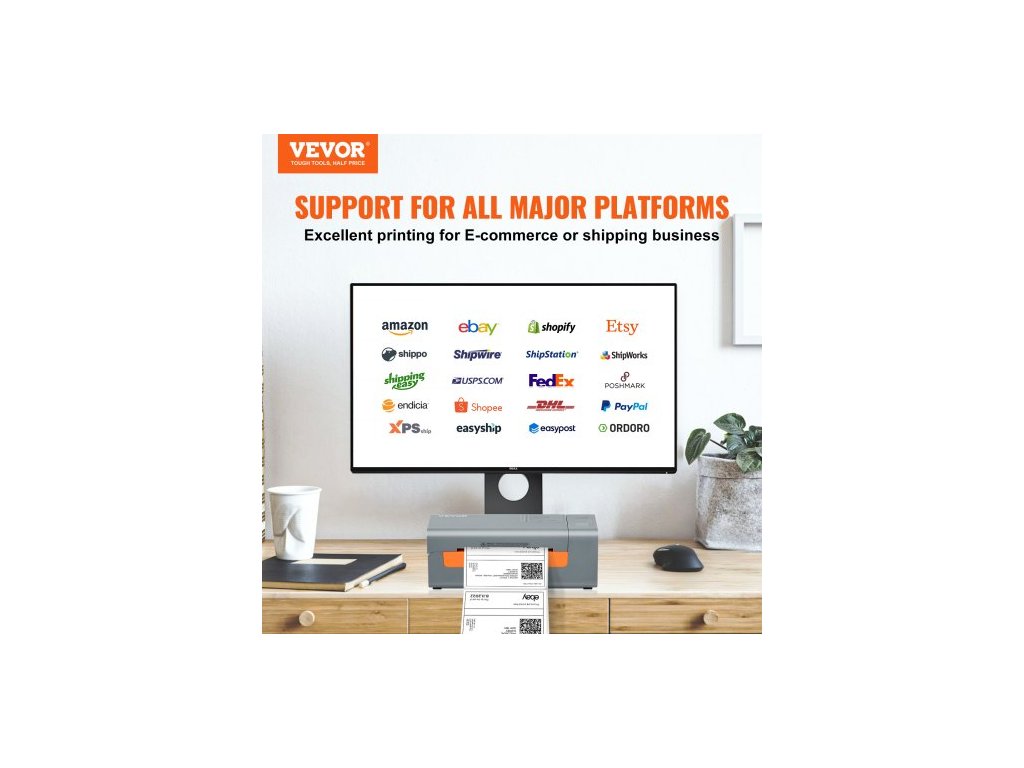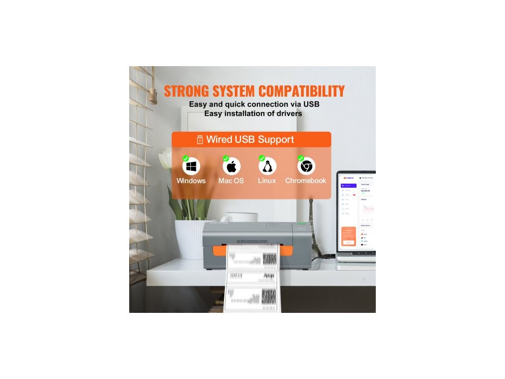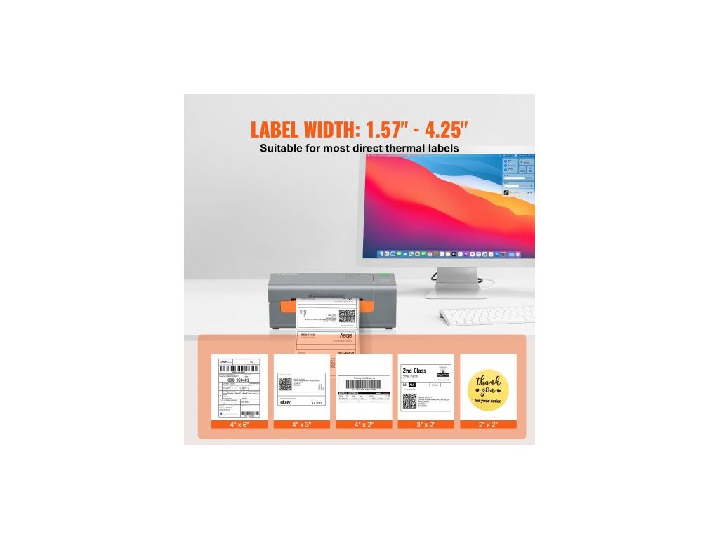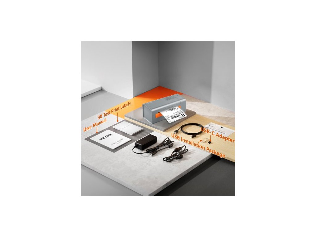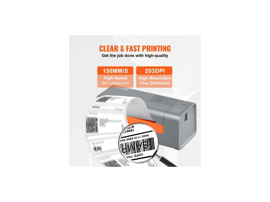 Termotiskárna štítků , 203DPI 60 ks/min pro poštovní balíky 4x6, USB připojení a automatické rozpoznávání štítků, podpora Windows/MacOS/Linux, kompatibilní s Amazon, eBay, Etsy, UPS atd., šedá