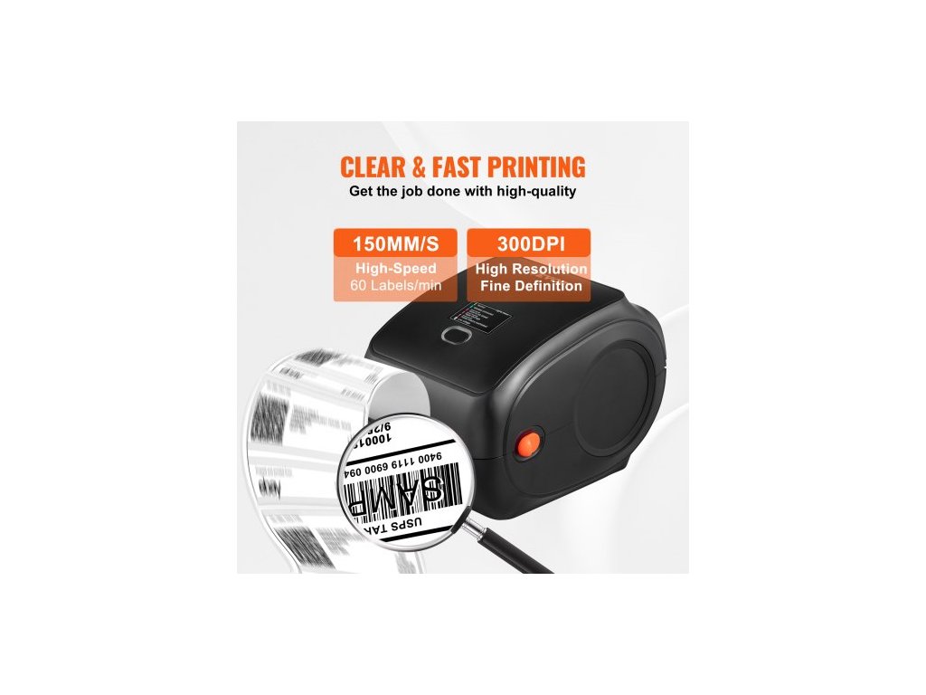 Termotiskárna štítků , 300 DPI pro poštovní balíky 4x6, bezdrátové připojení Bluetooth a automatické rozpoznávání štítků, podpora Windows/MacOS/Linux/Android/IOS, kompatibilní s Amazon, eBay, Etsy atd.