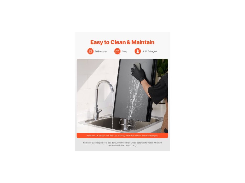 Teplotní odolnost: Max. 500°F / 260°C,Barva: Černá,Číslo modelu položky: HH-SPN007,Hmotnost výrobku: 13,4 lbs / 6,07 kg ±5 %,Materiál: Uhlíková ocel,Plocha pro vaření: 32"x12" / 812x310 mm