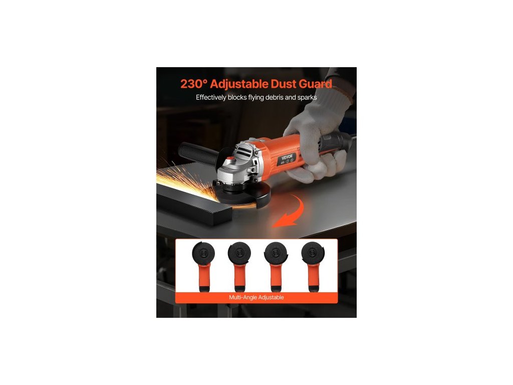 Úhlová bruska , elektrická bruska 127 mm, vysokorychlostní úhlová bruska s kabelem 5,4 A, 10 000 ot./min. s nastavitelným krytem proti prachu pro broušení, řezání a odstraňování rzi kovů (kotouč není součástí balení)