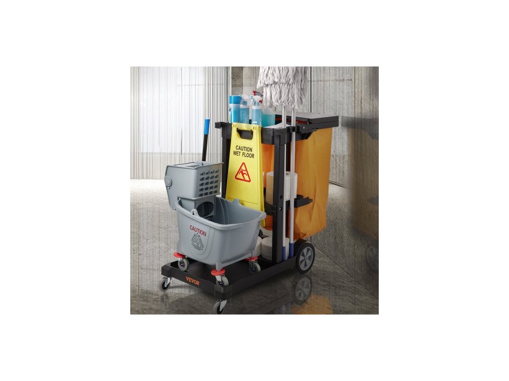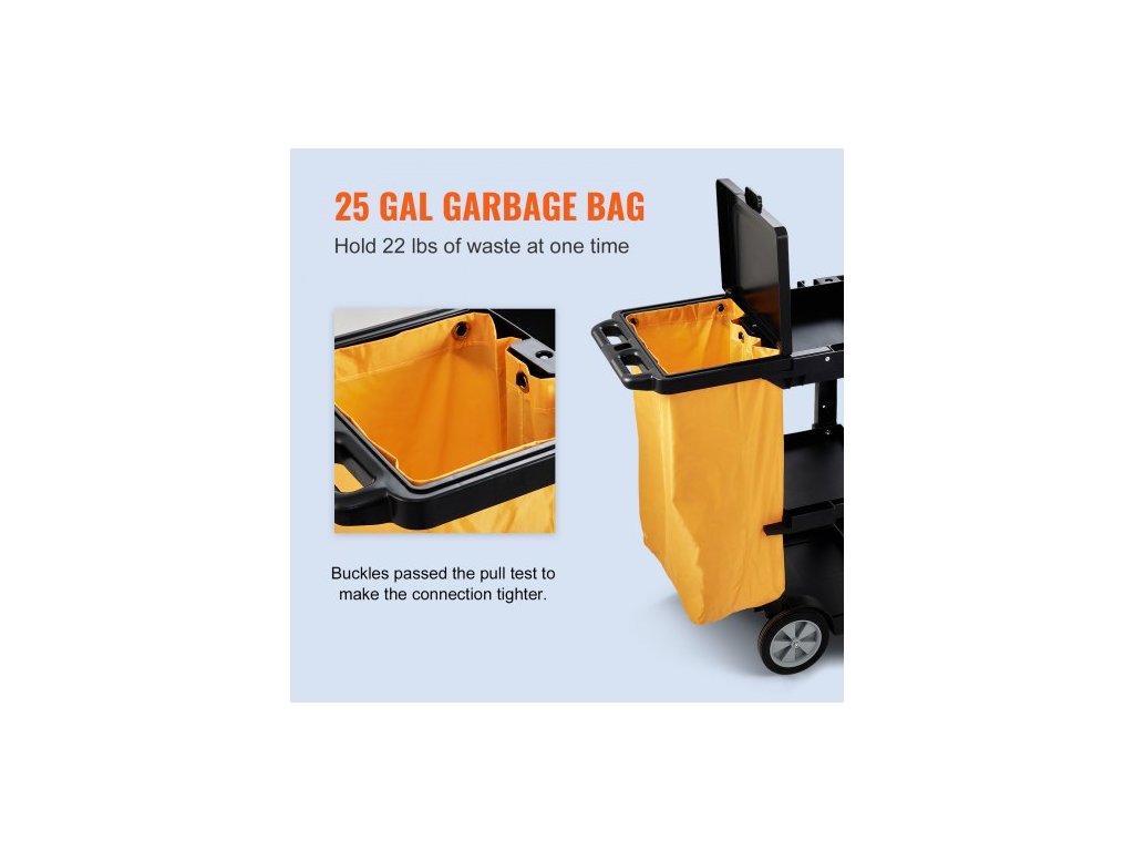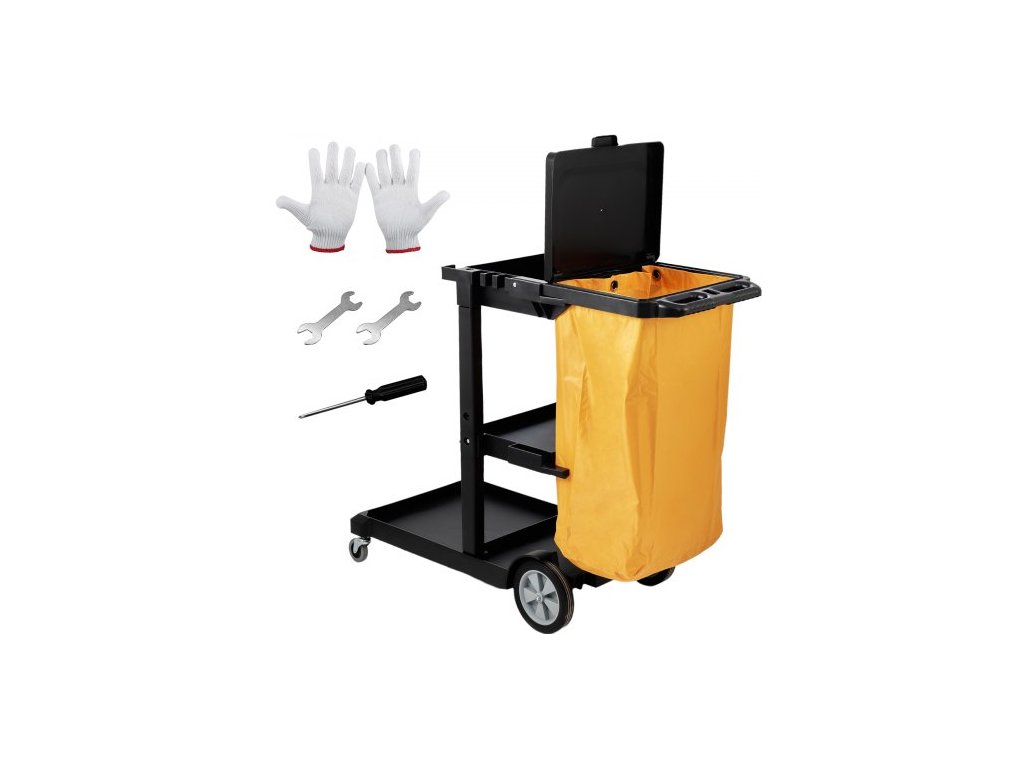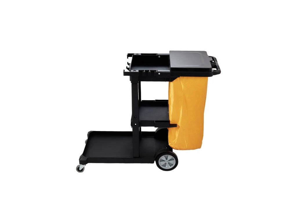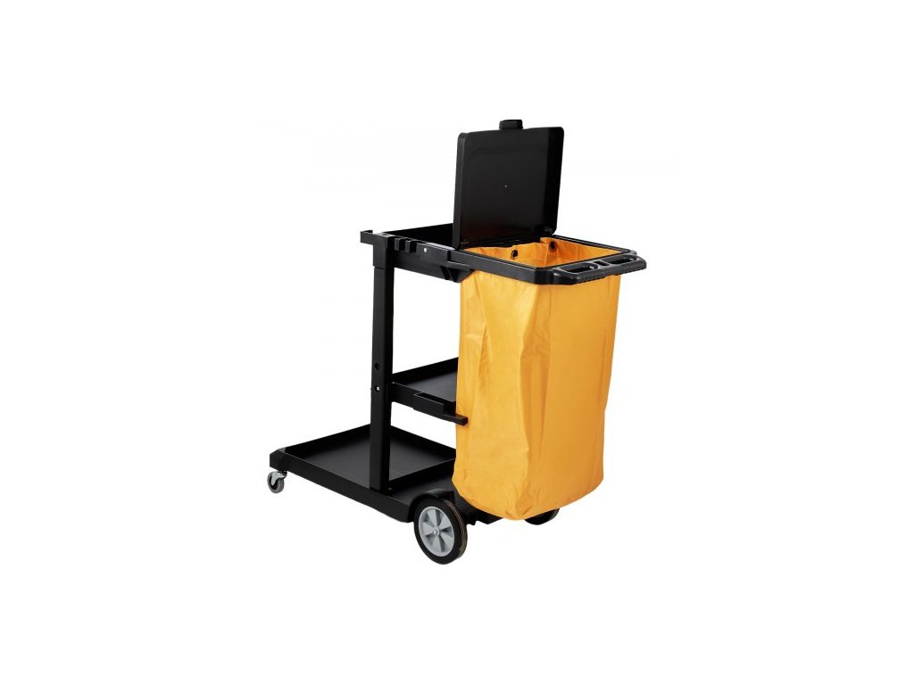 Úklidový vozík , 3policový komerční úklidový vozík, plastový úklidový vozík s nosností 90 kg, s 25galonovým PVC vakem a krytem, 120 x 51 x 98 cm, žluto-černý