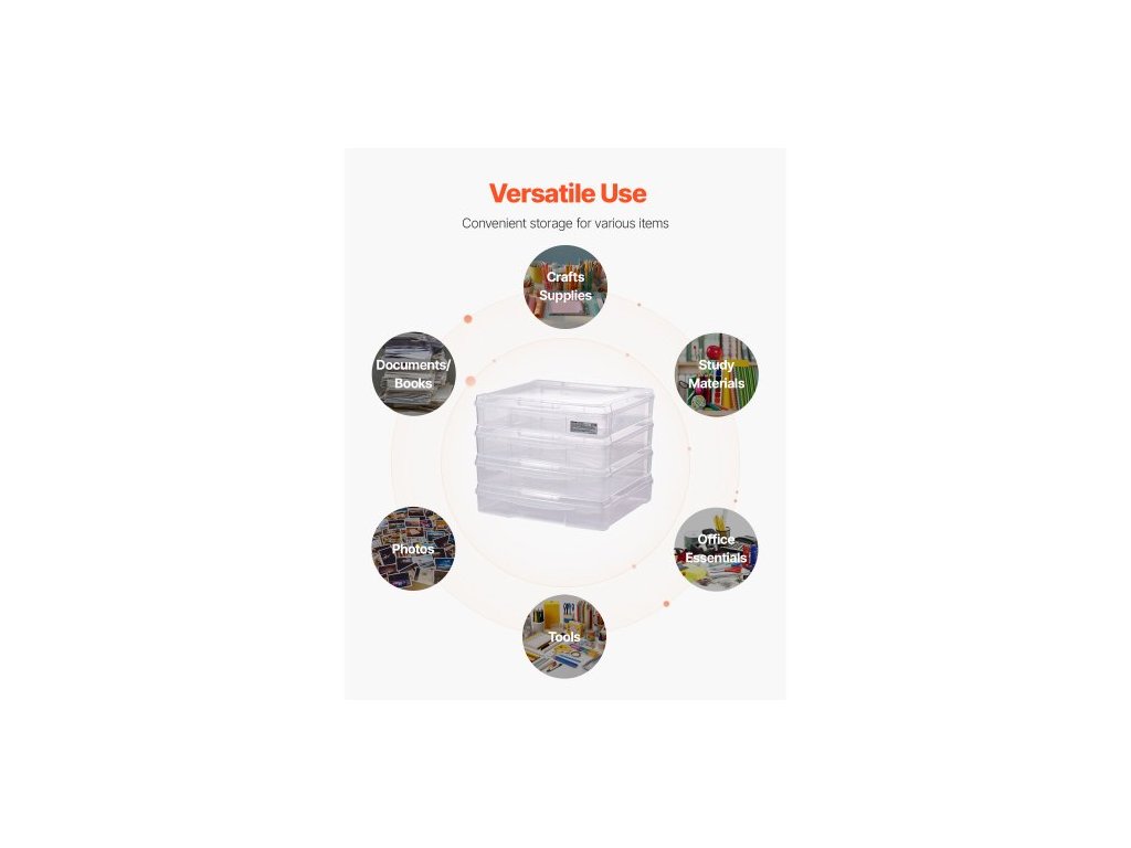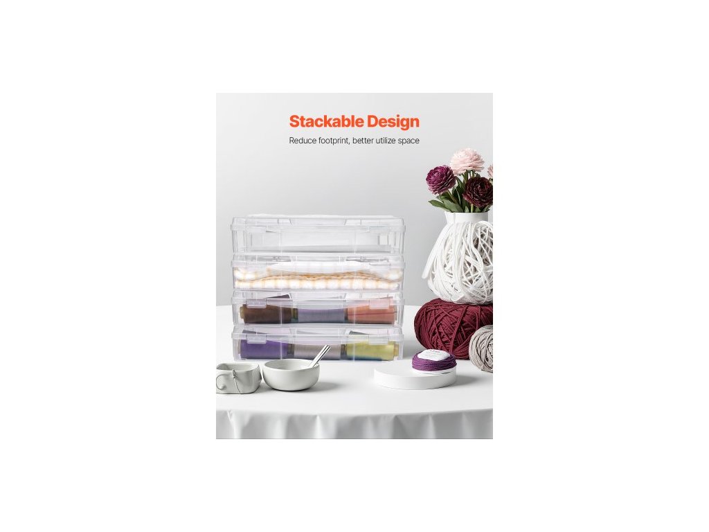 úložný box na papír do scrapbooků, 4 kusy stohovatelných plastových krabiček na deskové hry, průhledné víceúčelové pouzdro na dokumenty se zaoblenými rohy a dvojitými západkami, pro kancelářské potřeby, nářadí, umělecké a řemeslné potřeby