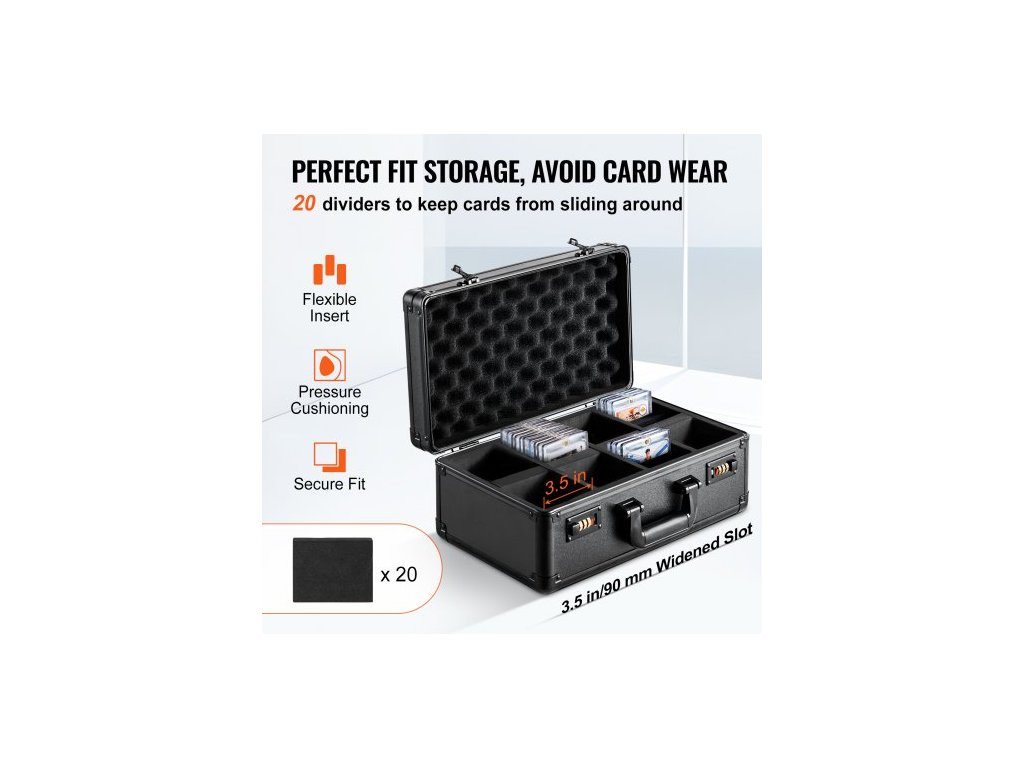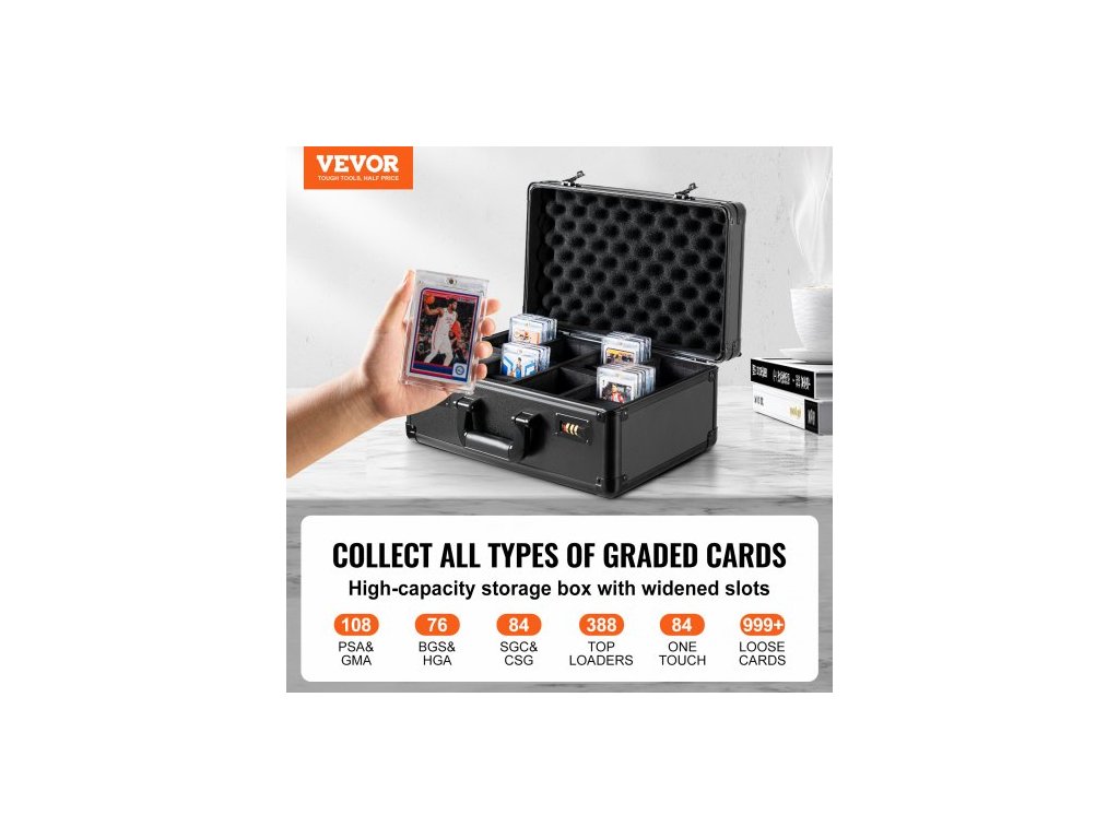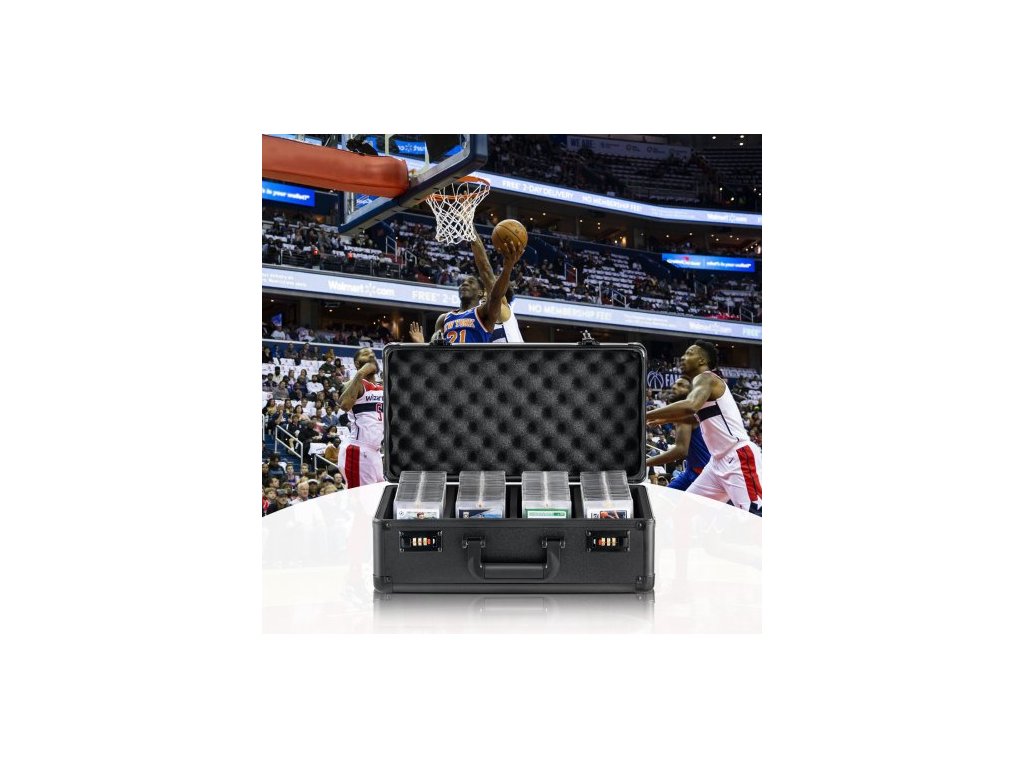 Úložný box na sportovní karty, 4 sloty, držák na sportovní karty s kódovaným zámkem, pěnové přepážky, pro 108 karet PSA, 76 karet BGS, 84 karet SGC, 388 karet s horním vkládáním nebo 999+ volných karet