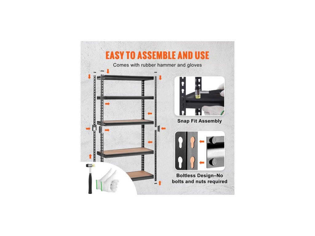 Nastavitelná rozteč polic: 38 mm (5 polic),Rozměry výrobku (D x Š x V): 75 x 30 x 152 cm,Číslo modelu položky: ZMV0,Hmotnost výrobku: 13 kg,Materiál: SPCC uhlíková ocel + MDF desky,Celkové zatížení: 2000 907,2 kg, Nosnost každé police: 181,4 kg