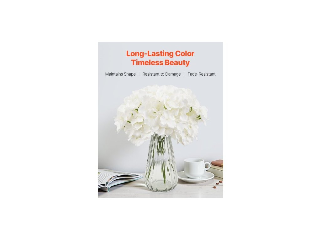 Rozměry jednoho stonku: 6 x 6 x 9,8 palce / 152 x 152 x 250 mm,Typ: Hortenzie,Průměr jednoho květu: 6 palců / 152,4 mm,Barva: Bílá,Číslo modelu položky: JNX001,Množství: 105 stonků,Délka jednoho stonku: 7,5 palce / 190,5 mm,Materiál: Hedvábí + PE,Délka jednoho květu: 3,5 palce / 88,9 mm,Položka Hmotnost: 1,32 kg