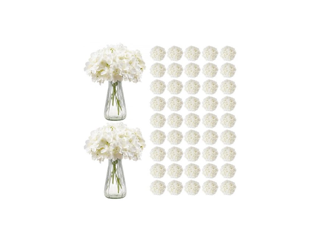 Umělé květiny , 105 ks, skutečné bílé hedvábné umělé hortenzie, velké množství, bílá falešná svatební dekorace se stonky pro DIY svatební kytice, dekorace do interiéru, aranžmá, dekorace na párty stoly