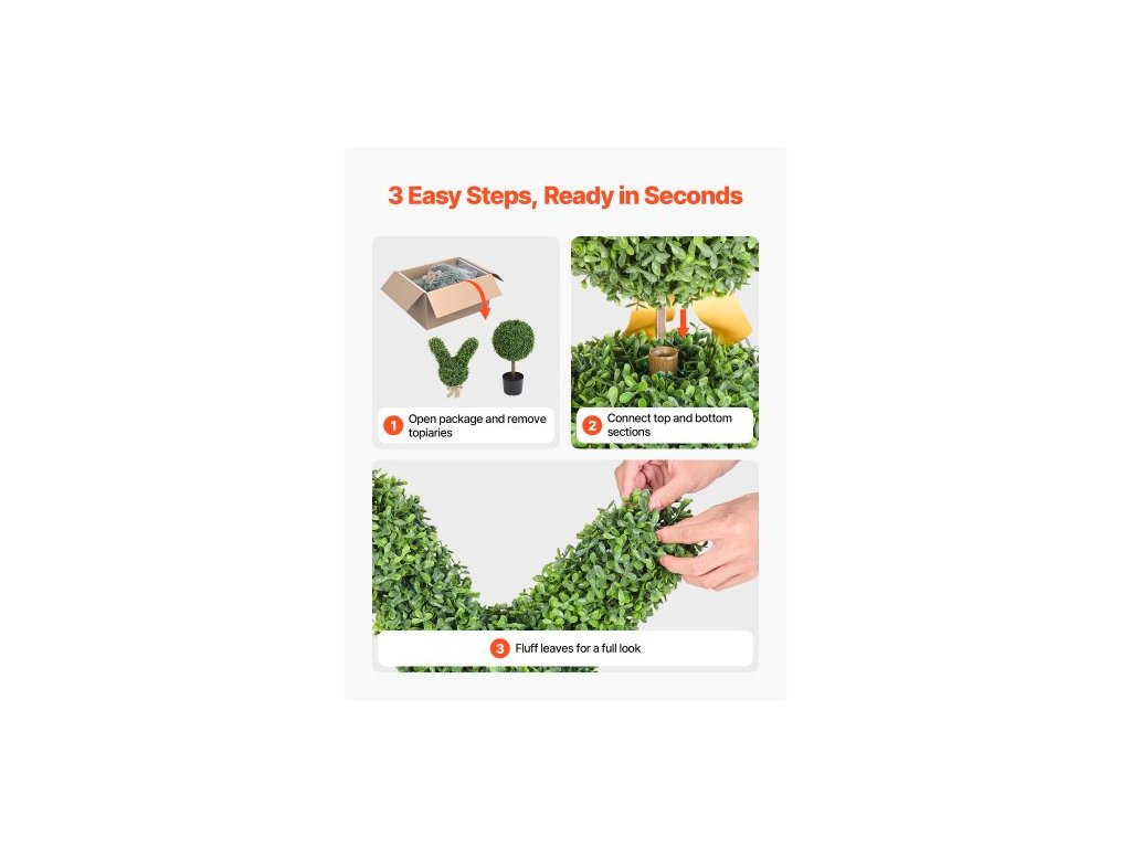 Umělé topiary z buxusu ve tvaru zajíčka, 2 sady 914mm umělých buxusových rostlinných koulí, umělý hedvábný strom vypadá jako skutečný, snadná montáž pro dekoraci na verandu, venkovní terasu, zahradu, balkon, dvůr, vnitřní prostor