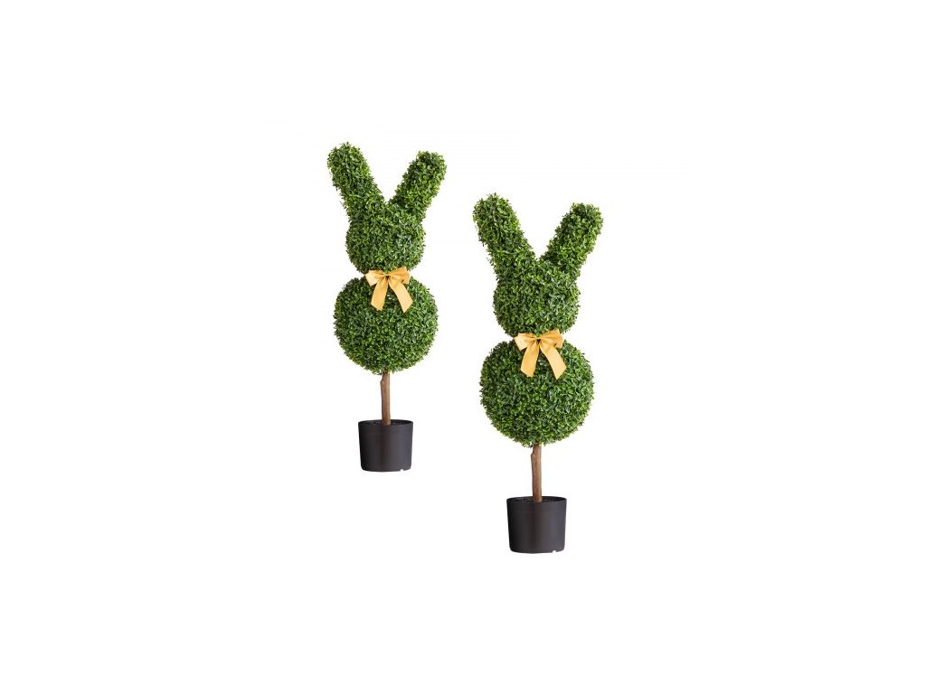 Umělé topiary ve tvaru králíčka z buxusového dřeva, 2 sady 914mm umělých rostlinných koulí z buxusového dřeva, umělý hedvábný strom vypadá jako skutečný, snadná montáž pro dekoraci na verandu, venkovní terasu, zahradu, balkon, dvůr/vnitřní prostor