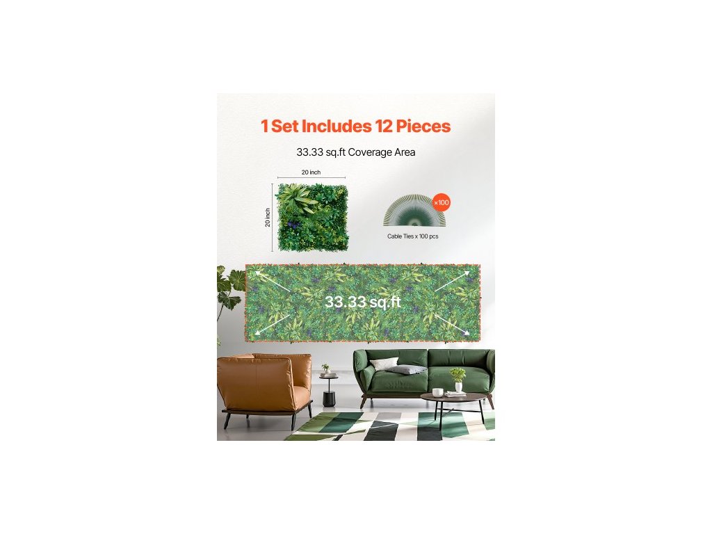 Umělé travnaté stěnové panely, 12 ks 20 x 20 palců, 3D kombinované zelené panely z buxusu pro vnitřní a venkovní zelené dekorace a krytí plotu z břečťanu, soukromí na pozadí, nástěnný živý plot do zahrady