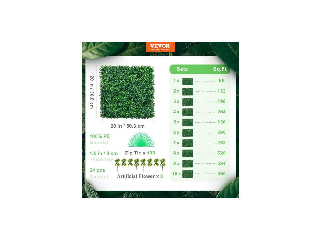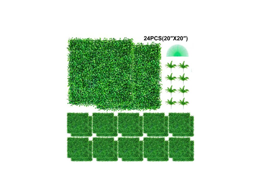 Umělý zimostrázový panel UV 24 ks, živý plot zimostrázu, nástěnné panely s umělou trávou, pozadí na zeď 20" x 20", 4 cm, zelená travnatá zeď, umělý živý plot pro dekoraci, soukromí, plot, vnitřní, venkovní, zahrada, dvůr