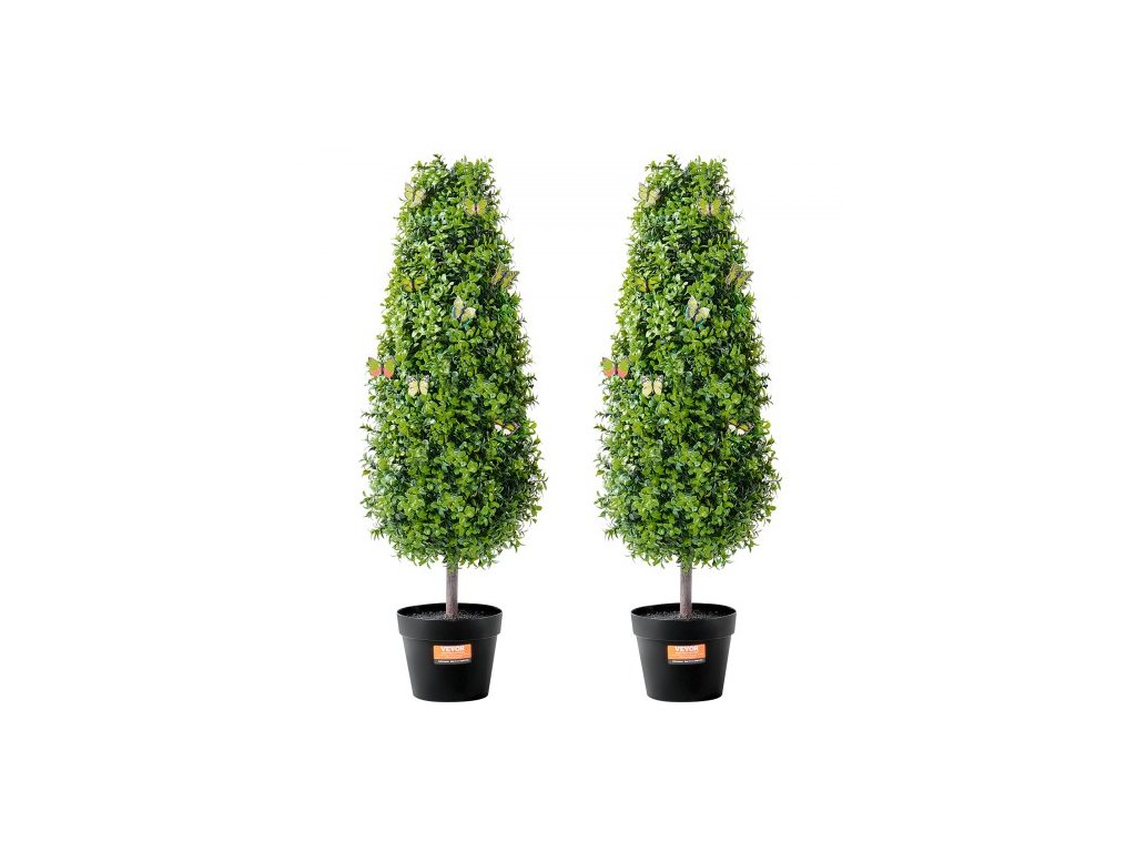 Umělý buxusový strom, výška 91 cm (2 kusy), umělé buxusové stromy, zelená umělá rostlina s extra listy a květináčem a malou dekorací, sada zeleně s UV ochranou pro domácí dekoraci do interiéru/venku